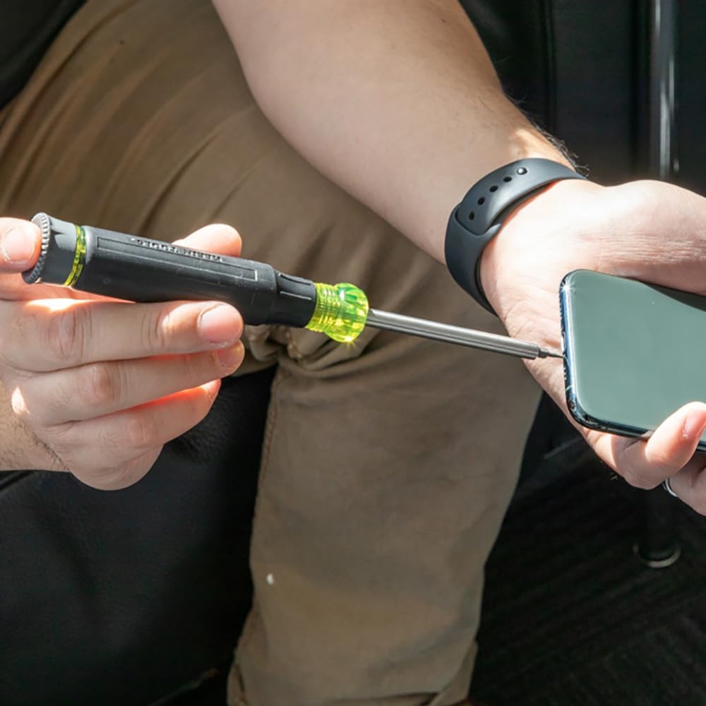 The 27-in-1 Multi-Bit Precision Screwdriver offers 26 specialty bits conveniently stored in the handle plus an integrated 3.5 mm nut driver. This tool includes bits for repair of most Apple products. The powerful Rare-Earth magnet in the barrel securely holds bits and fasteners. This screwdriver features industrial-strength bits as well as Cushion-Grip handles with spin caps for outstanding comfort and control. For more than 160 years, Klein Tools has manufactured premium-quality, professional-grade hand tools that deliver the performance, durability and precision needed to get the job done right. Our family of engineers, workers and craftsman continue to put six generations of expertise into every tool we create by using only the highest quality materials, superior workmanship, and keeping manufacturing as close to home as we can. Klein isn’t just the name of our company, it’s also our family name. And since we’re an American company that’s family-owned and family-run, you know you can count on us to be here tomorrow. Klein Tools doesn’t just make great products, we make great products that stand up to the demands of the professionals who use them every day … Since 1857.