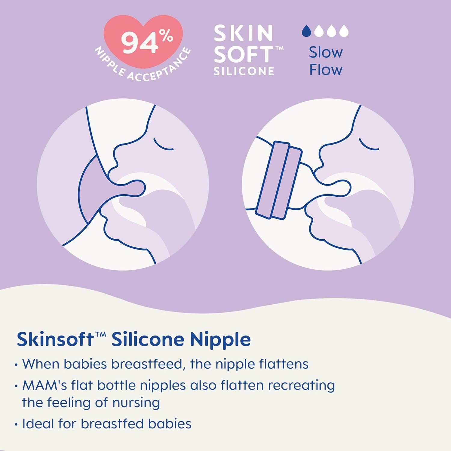THE ANTI-SLIP TEXTURE helps the nipple remain securely in your infant’s mouth, ensuring a steady feed. MAM baby bottles are 100% free from BPS & BPA.