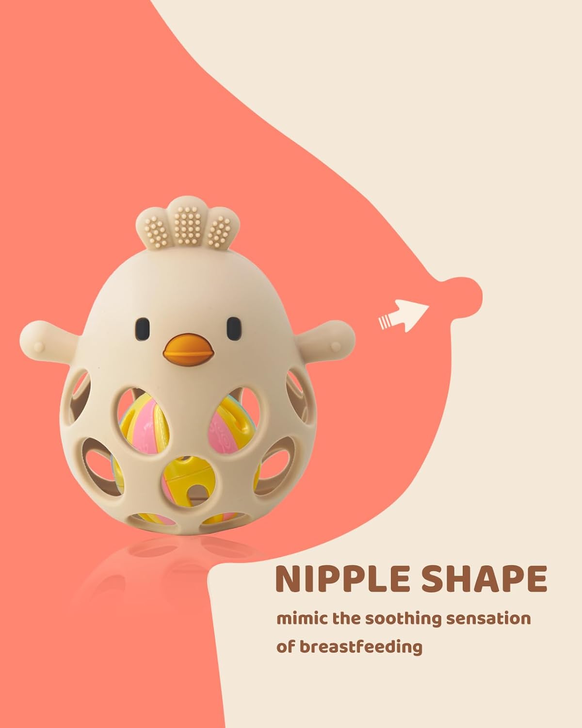 Baby Teething Rattle Toy, Upgraded Easy Grasp Silicone Teething Rattle Ball Toy for Babies Over 3 Months, 100% Food Grade, Gift for Infant Boys and Girls 0-6-12 Months