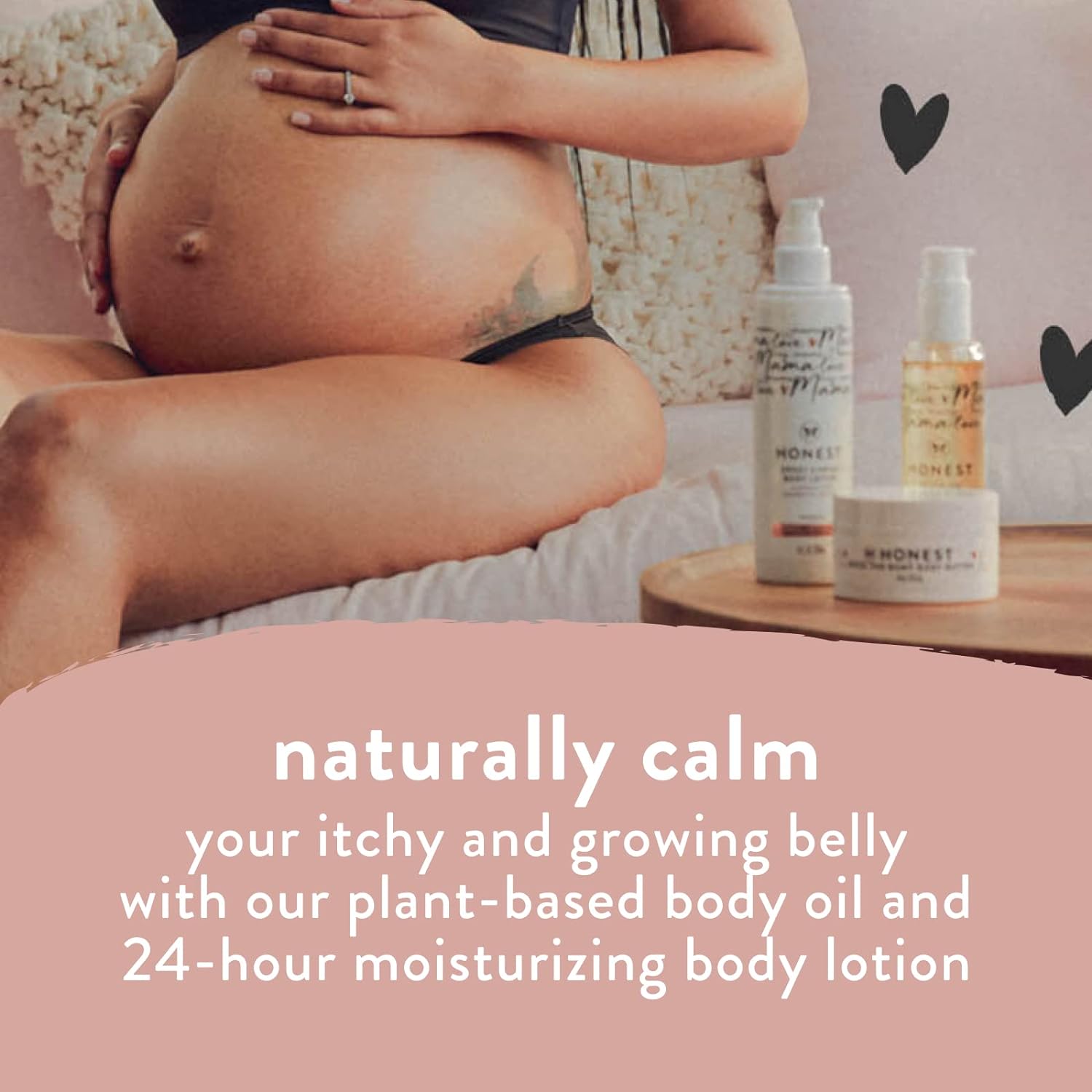 2-in-1 bundle for bump-care!; Naturally calm your itchy, growing belly with our plant-based body oil + 24-hour moisturizing body butter lotion