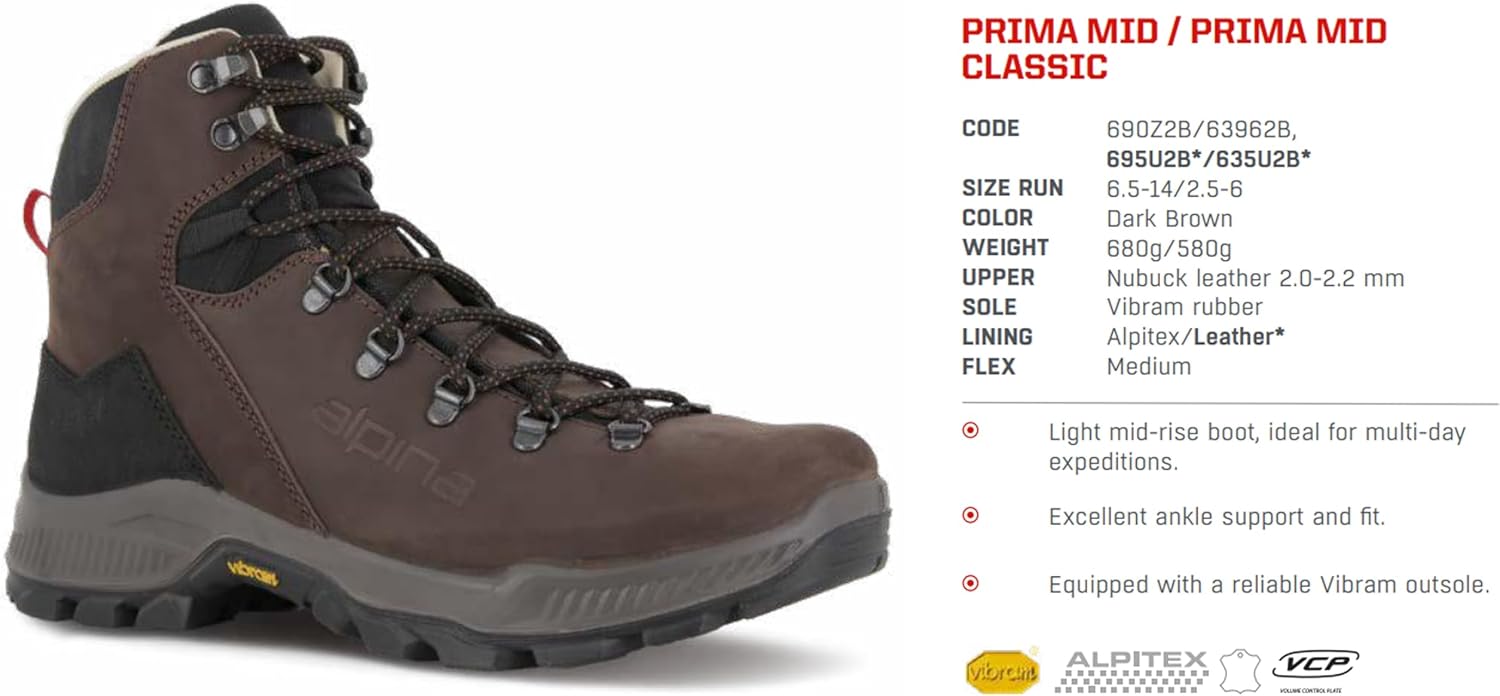 Alpina PRIMA Premium Men’s Waterproof Boots | Leather Ankle High | Breathable Membrane | Vibram | All Weather Shoes | Made in Europe
