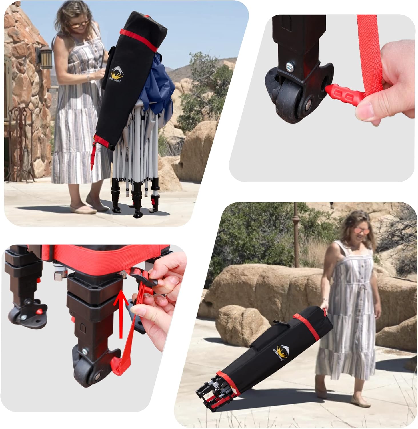 [EASIEST SET UP]: Patented one push center lock technology – central hub locks out all four legs with a single push. Then use the soft pinch-free buttons to set the leg height. Next generation canopy designed so two people can set it up in seconds with no tools necessary.