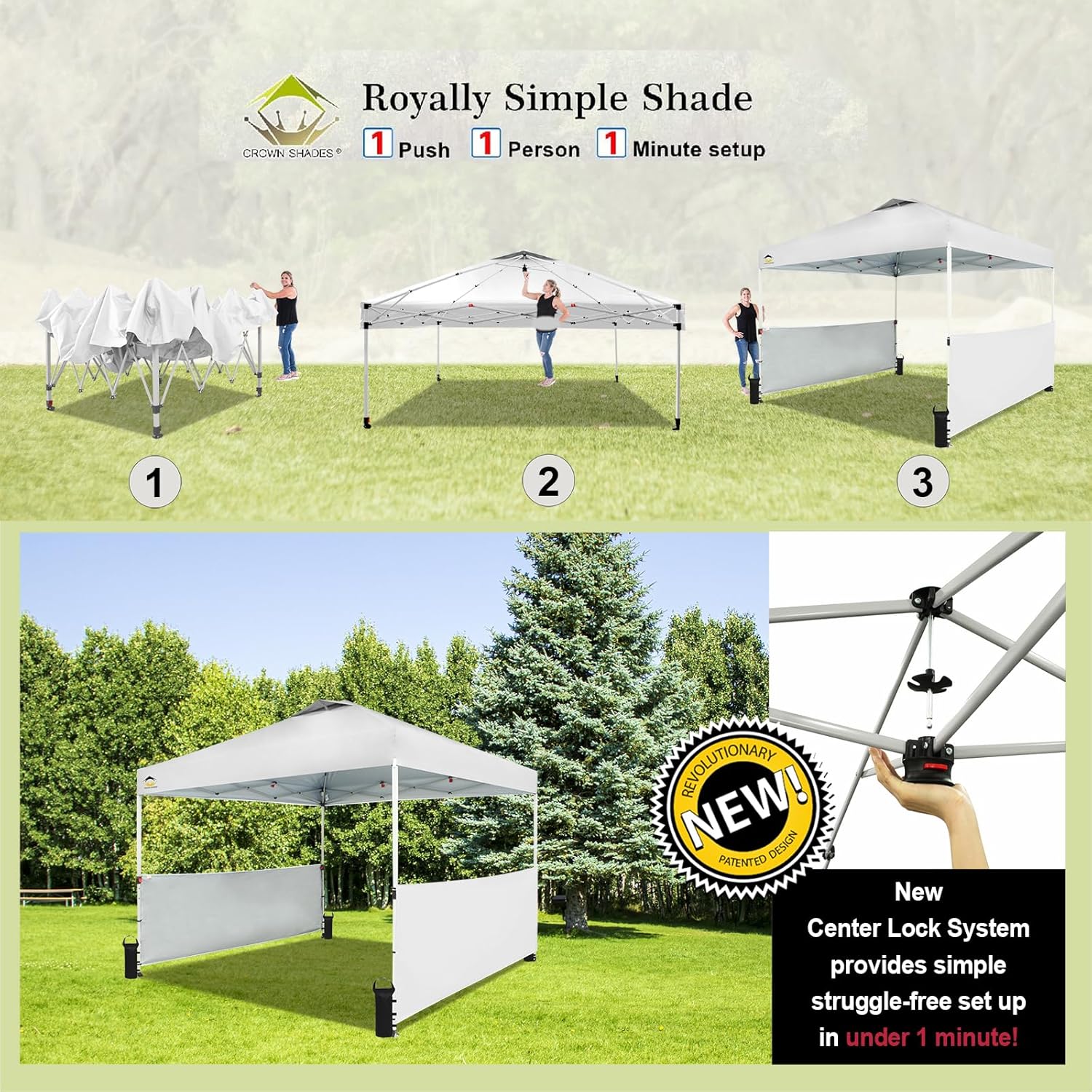 CROWN SHADES 10×10 Pop up Canopy Tent Instant Canopy with 150D Silver Coated Fabric Including 2 Half Sidewalls, 4 Ropes, 8 Stakes, 4 Weight Bags, STO ‘N Go Bag, White