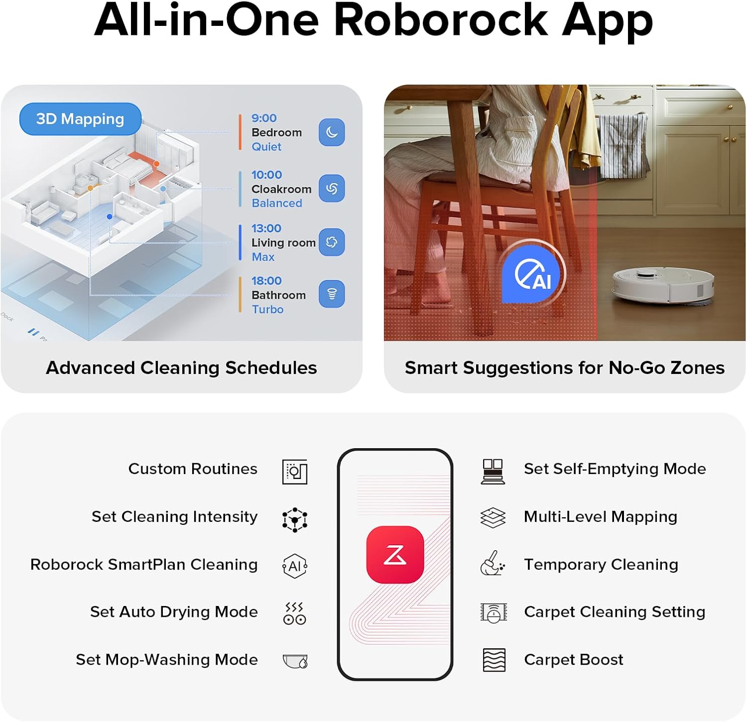 Revolutionize Your Cleaning Routine with Upgraded App Control: Utilizing cutting-edge AI algorithms, it orchestrates smarter and stress-free cleaning sessions. Seamlessly navigate unexpected scenarios with features like temporary cleaning and skipping, ensuring uninterrupted efficiency. Tailored carpet strategies and intelligent restricted areas offer personalized cleaning solutions that adapt to your home’s unique layout. Multi-level mapping supports up to 4 levels of map saving. Embrace the future of home cleaning with Roborock’s advanced app control.