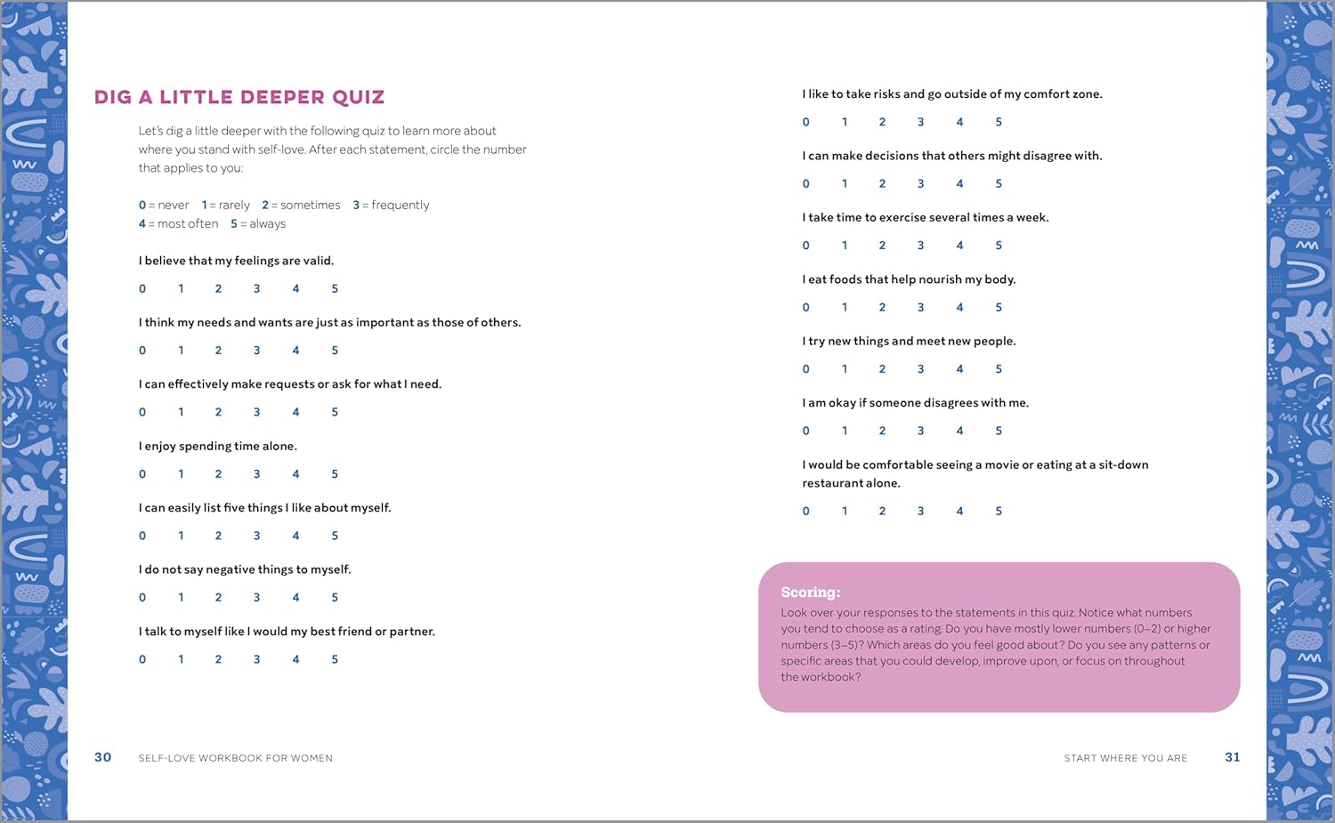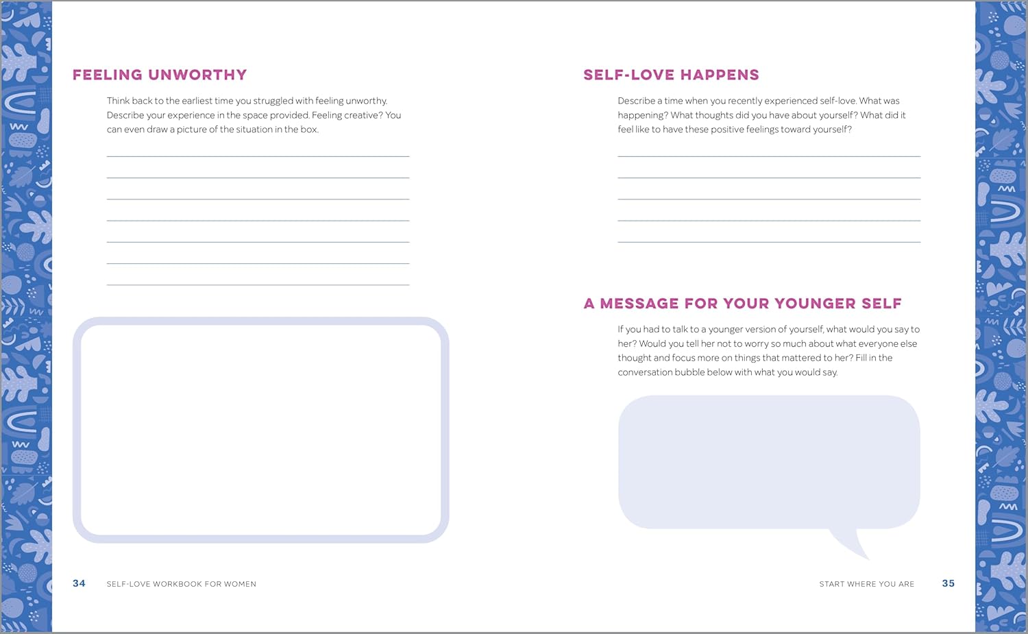 Inspiring activities―This self-esteem workbook features prompts like quizzing yourself on what matters to you, making a happy playlist, and writing a message to your younger self to help you tap into your emotions and let go of limiting beliefs.