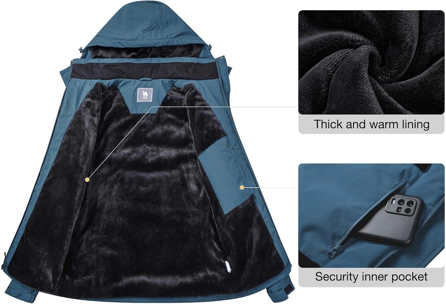 CAMEL CROWN Men’s Waterproof Ski Jackets Winter Coats Snow Jacket Adjustable Fleece Windbreaker Windproof Outdoor RainJackets