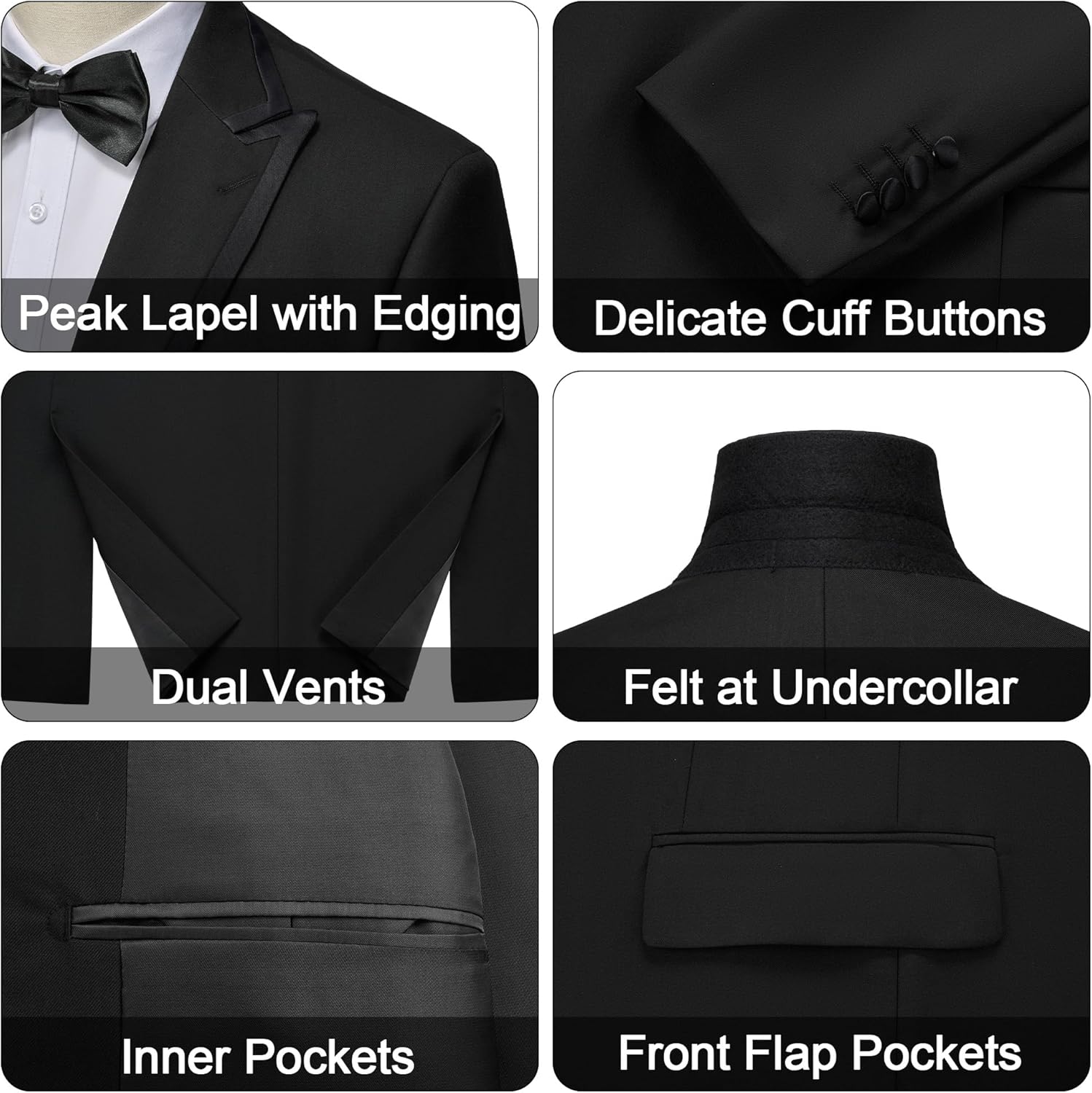 Stay organized with the functional pockets, including two flap pockets, a chest pocket, and two interior pockets, providing ample space for your essentials. Plus, each suit jacket includes a matching bow tie, effortlessly completing your ensemble with a dash of elegance.