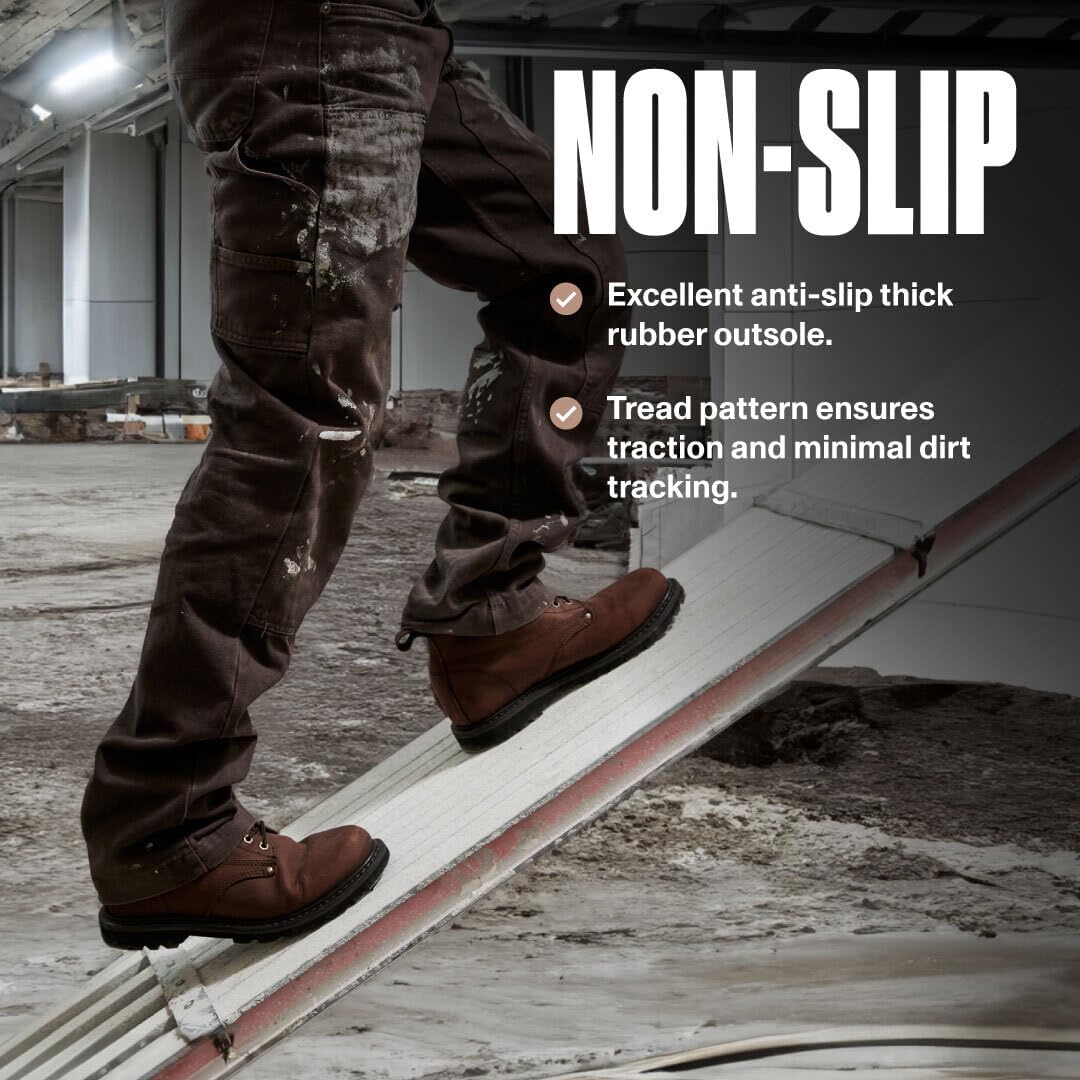 Work Boots for Men Soft Toe – 6inch Leather Boots for Construction Rubber Sole Working botas de trabajo para hombre, “Tank” Workboots