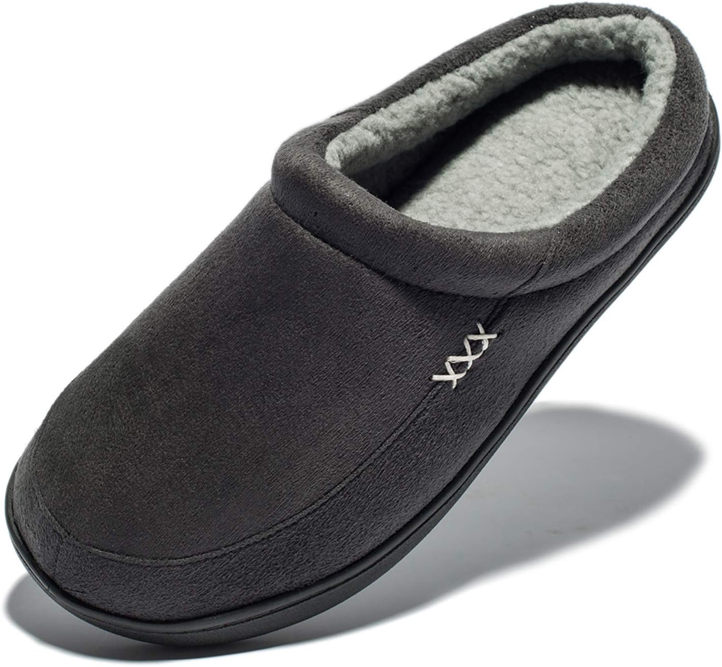 NewDenBer Men’s Warm Memory Foam Suede Plush Fleece Lined Slip on Indoor Outdoor Clog House Slippers