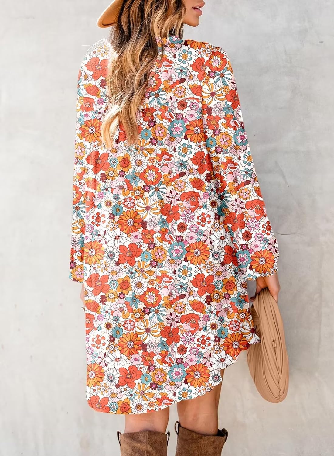 Bohemian Floral Print Dress Is Always Stylish And Classic,The High-Waisted A-Line Version Can Better Show Your Perfect Figure,The V Neck Design Shows Your Slim Neckline,Retro Long Peasant Sleeves,Different Dresses Make You Feel Different Ways,This One Made You Feel Really Cute,Sweet,Playful