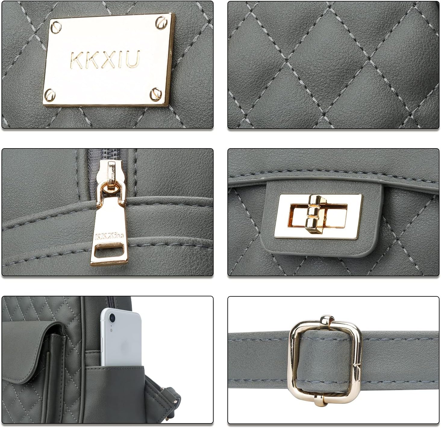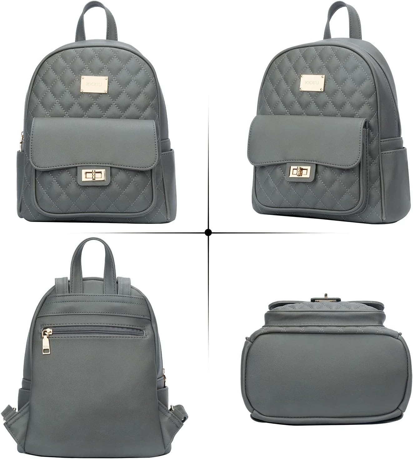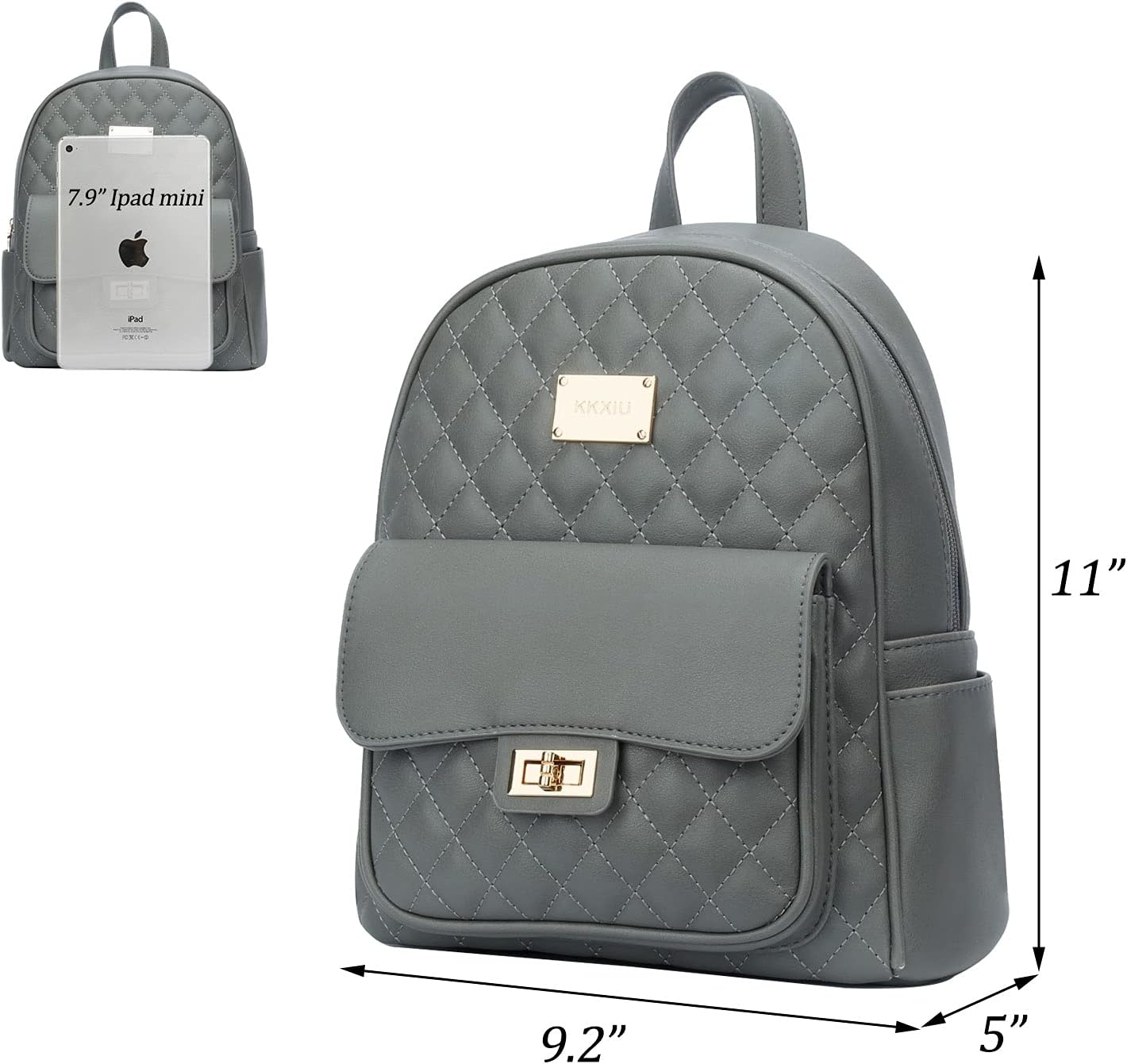KKXIU Teen Girls Fashion 9″*11″Small Backpack Purse for Women and Ladies Quilted Synthetic Leather Mini Bookbag (a-grey)