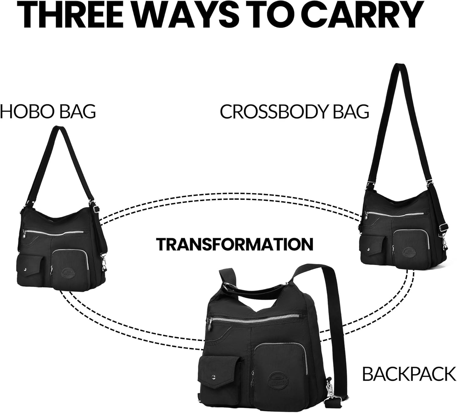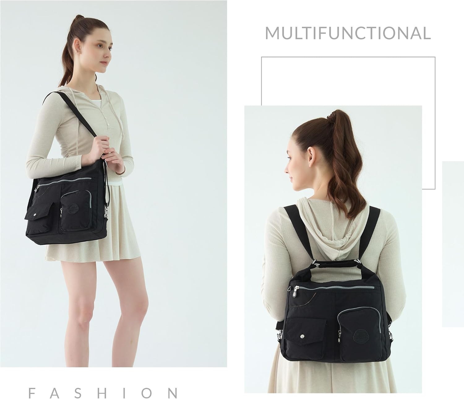 Multipurpose Hobo Purse for Women with Antitheft RFID, Waterproof Nylon Crossbody Bag Shoulder Handbag, Convertible Backpack