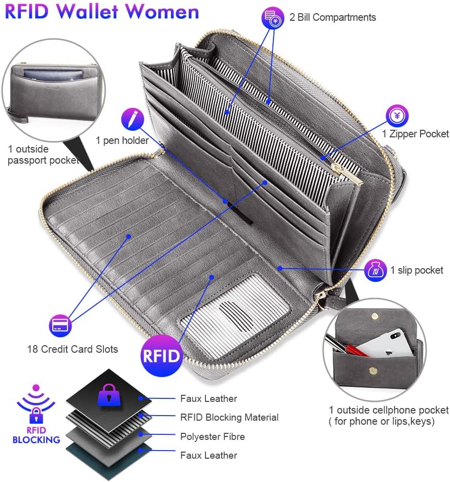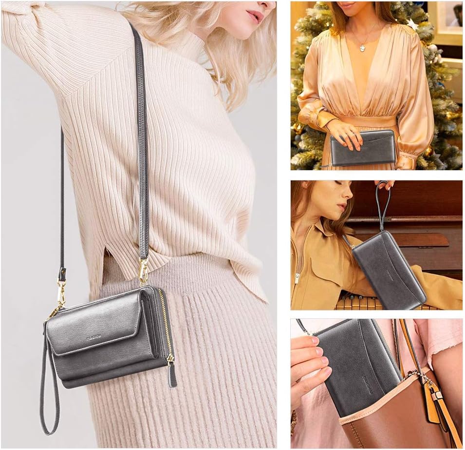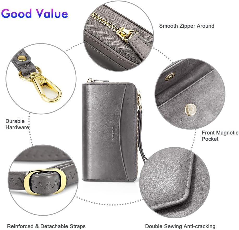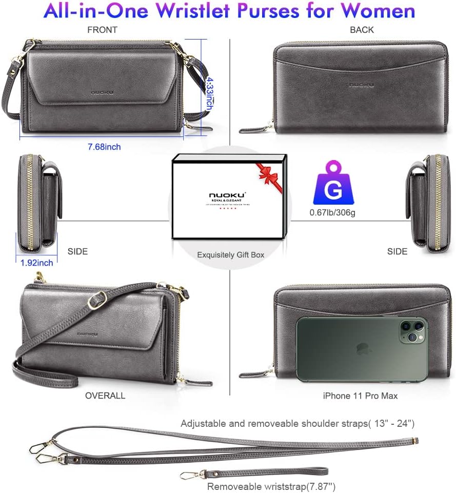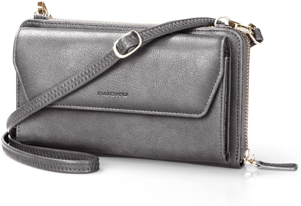 nuoku Womens RFID Wallet Purse Wristlet Crossbody Clutch with Zip Around 2 Strap