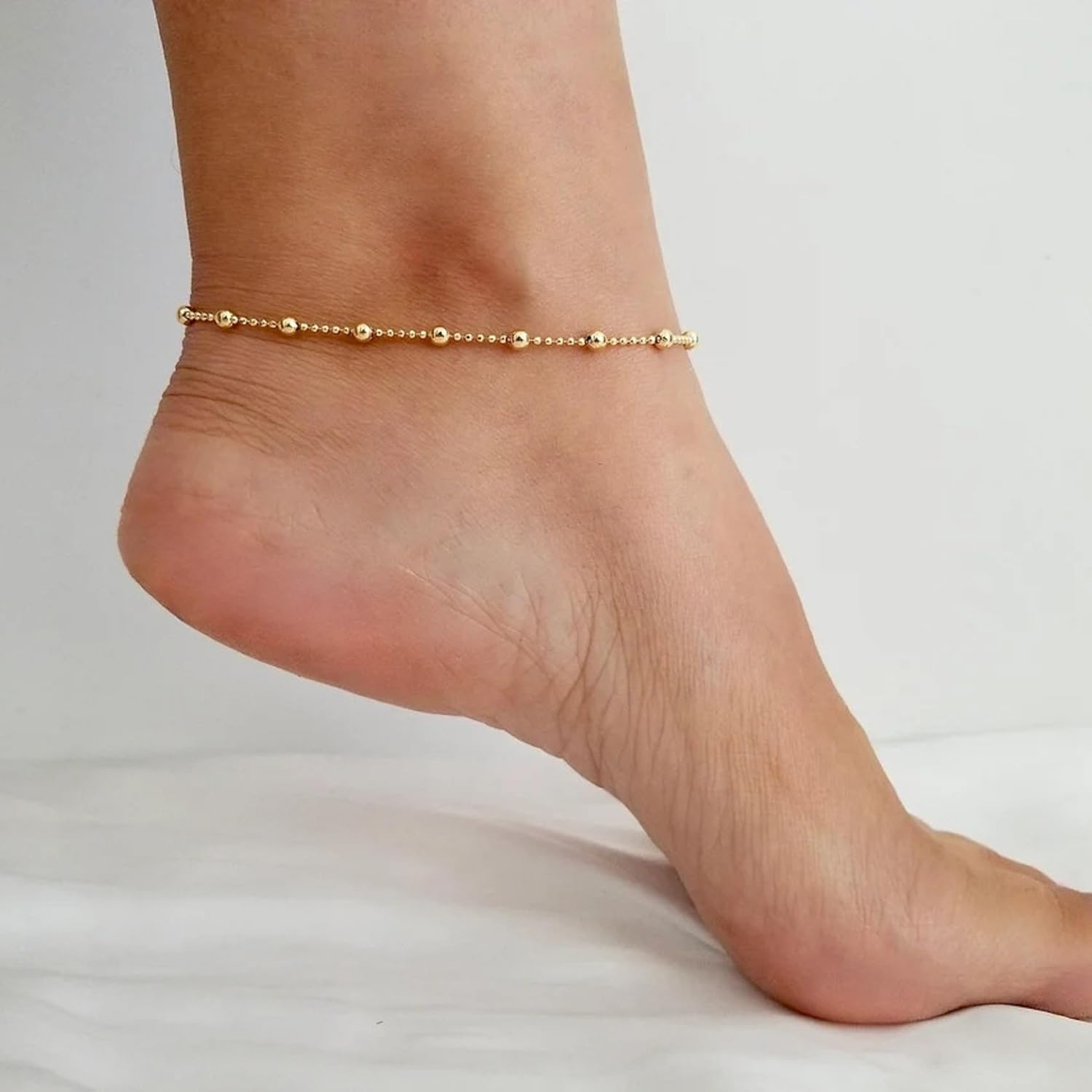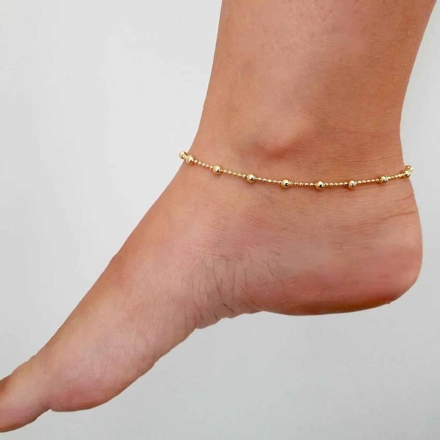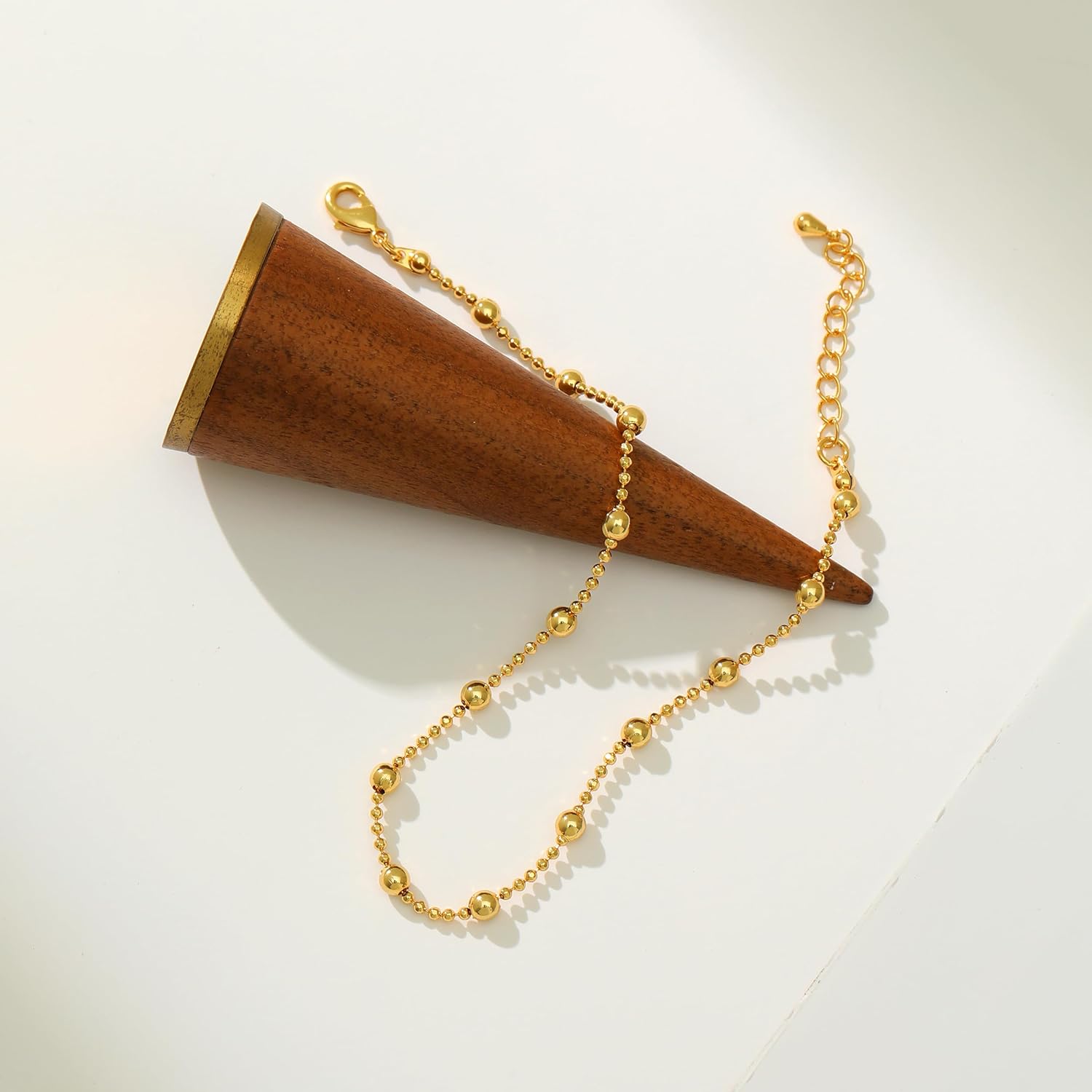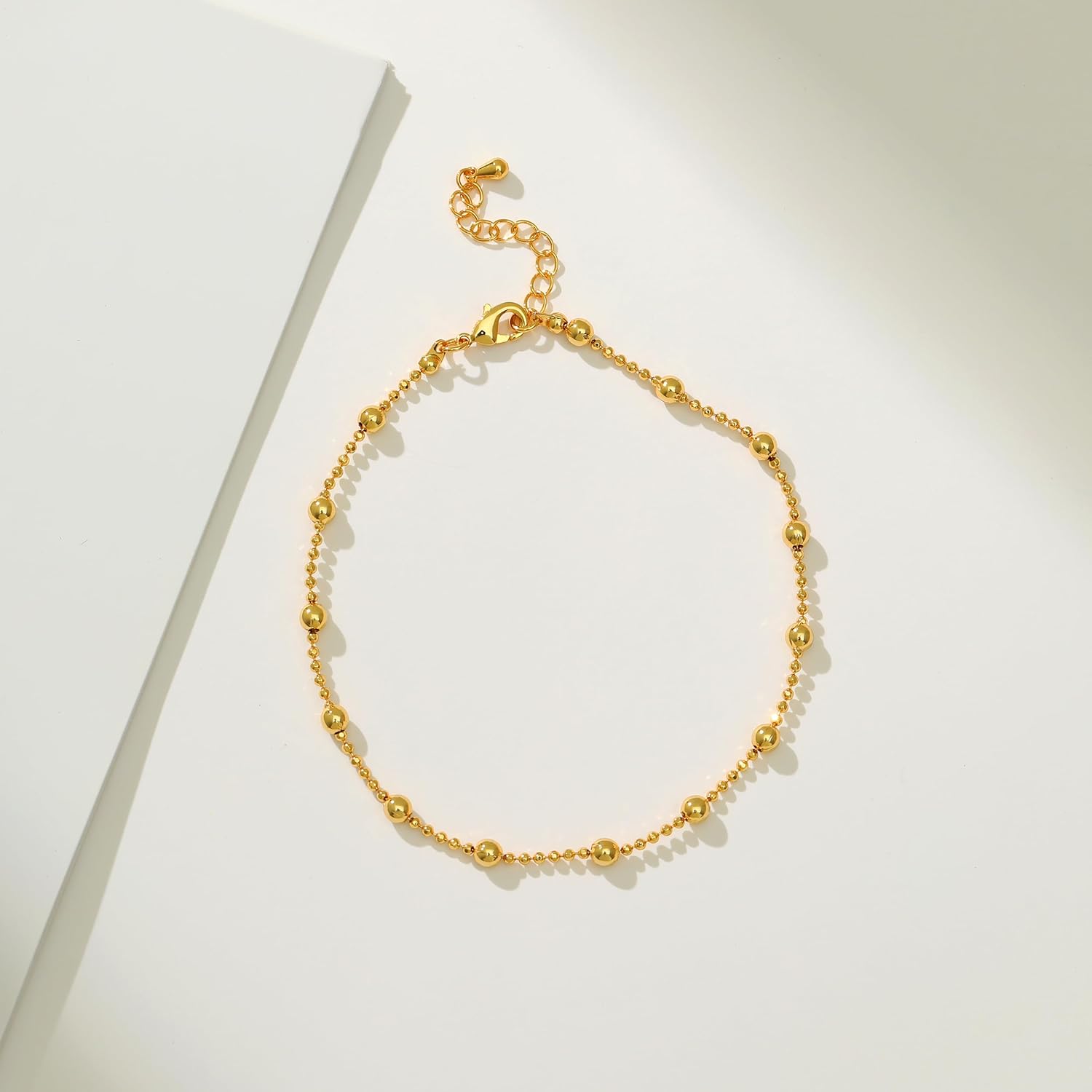 Caenyo Anklet for Women 14K Gold Plated Dainty Freshwater Pearl Bead Anklets for Women Waterproof Minimalist Simple Anklets For Teen Girls Fashion Summer Jewelry Anklet For Women.
