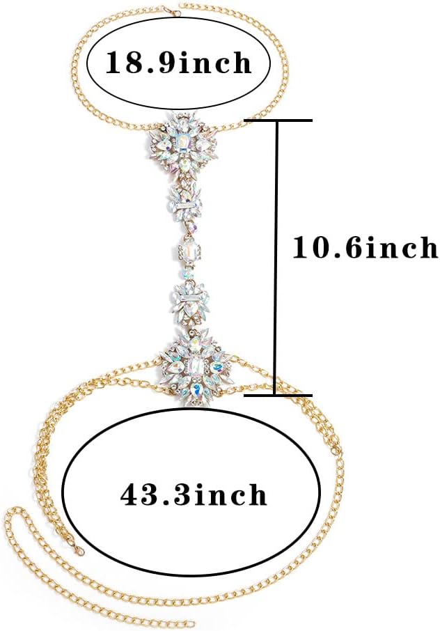 ELABEST Boho Rhinestone Statement Chest Chain Crystal Necklace Body Chain Summer Beach Body Jewelry Accessories for Women