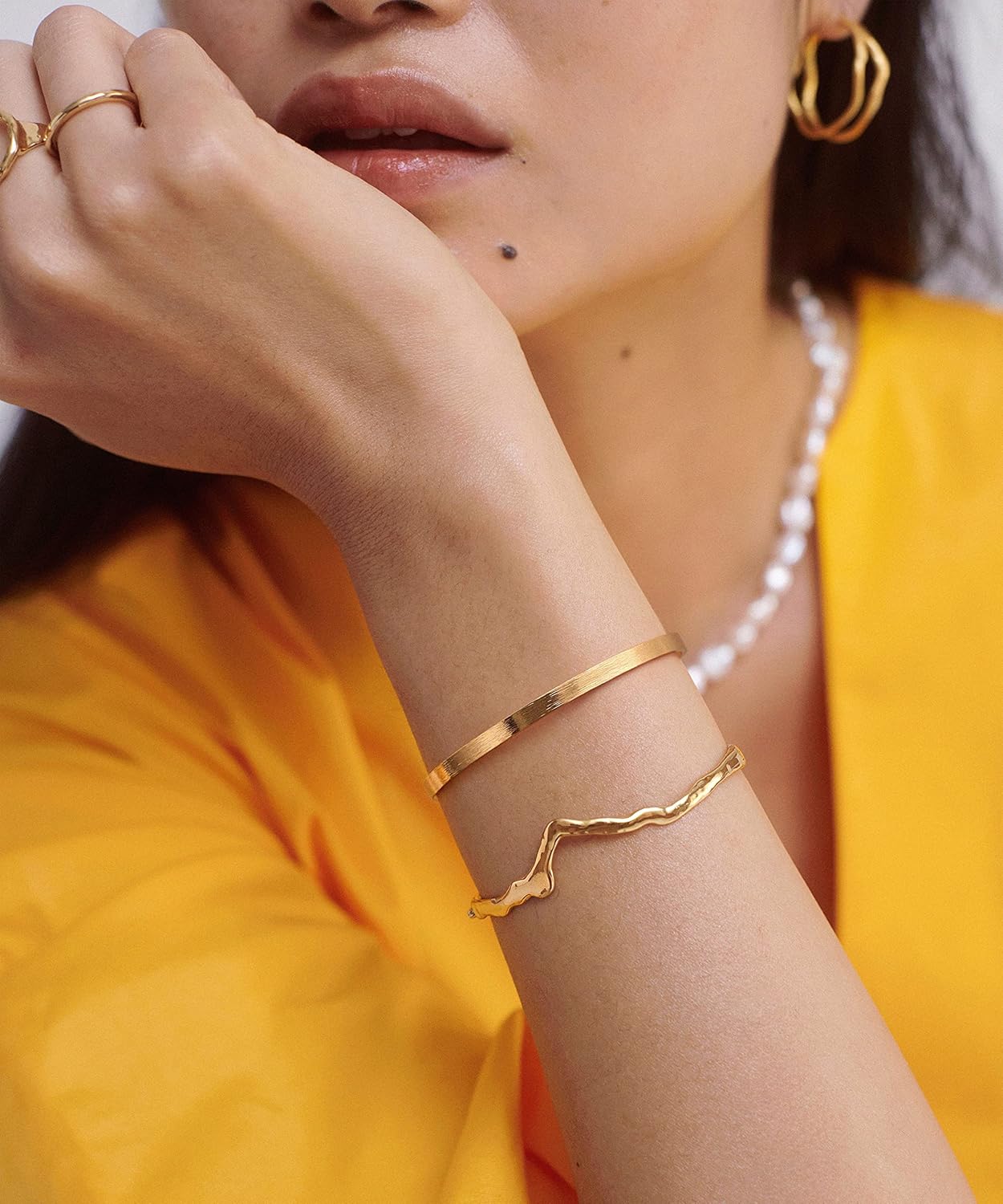 Aobei Pearl Gold Bangle Cuff