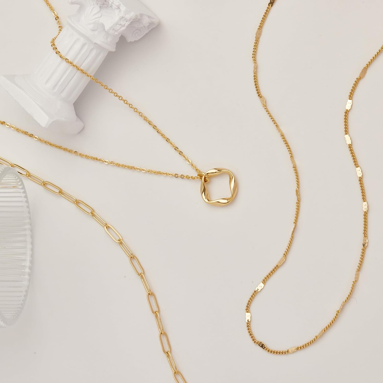 Layered Gold Necklaces for Women,Stackable Dainty 14K Gold Silver Plated Trendy Circle Paperclip Chain Pendant Choker Necklace,Simpl Diamond Cross Bow Jewelry Set Gifts for Women