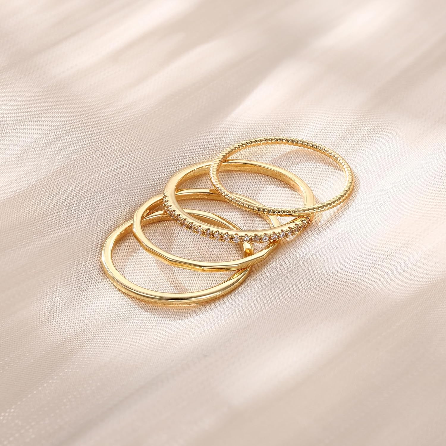 MILACOLATO 14K Gold Filled 1.3mm Thin Stackable Rings for Women – Minimalist Non Tarnish Half Cubic Zirconia Band Rings – Dainty Trendy Statement Stacking Rings Set Size 5-10