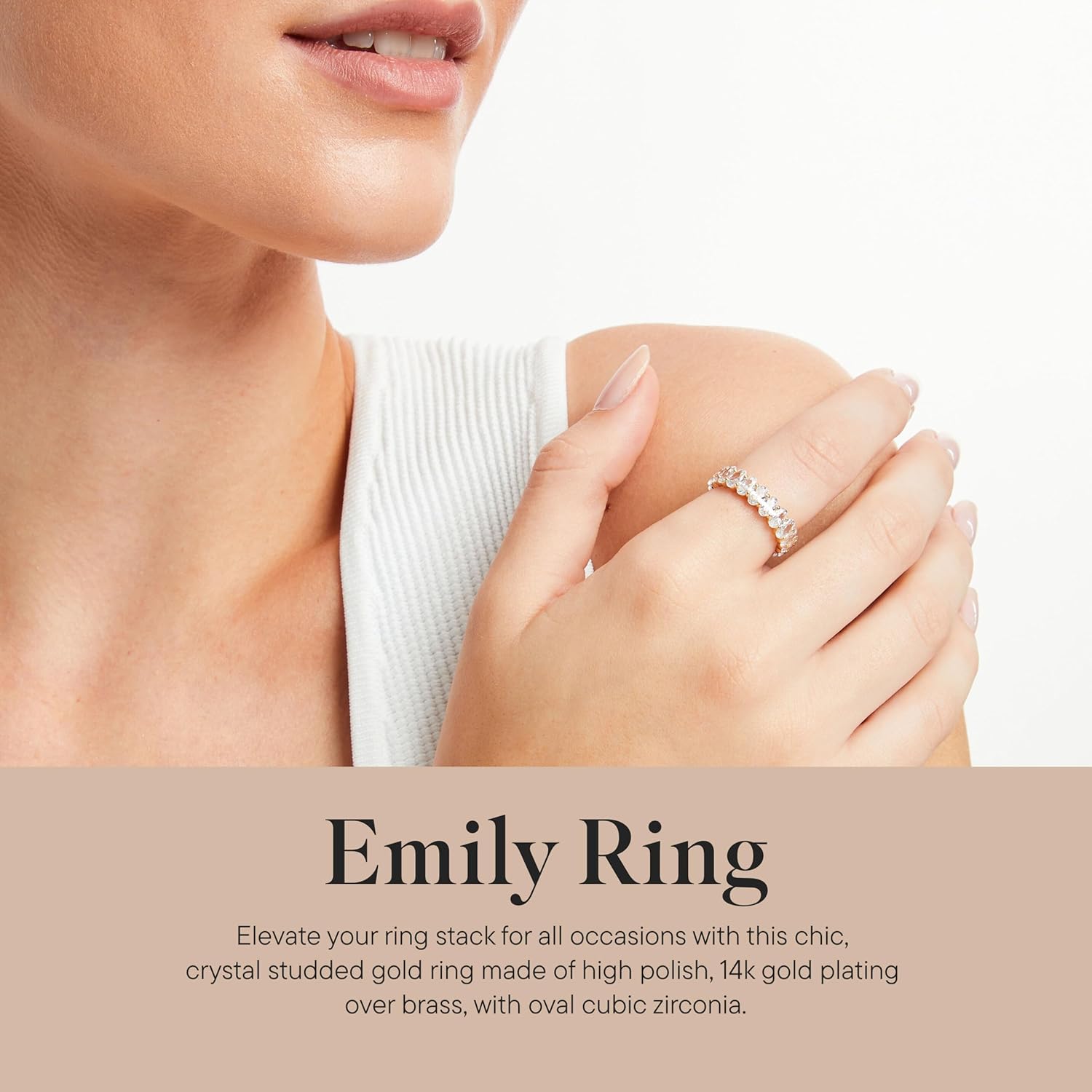 Rocksbox Emily Women’s Ring – High Polish Plating with Cubic Zirconia – Premium Quality Jewelry