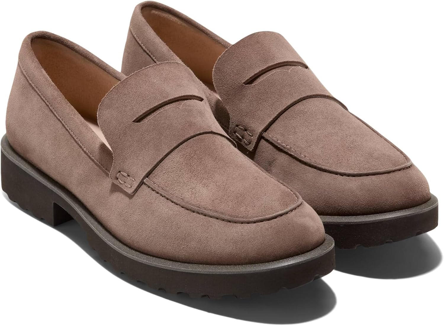 Penny loafer silhouette. Fully padded foam sock liner with arch cookie for added comfort. Leather lined. Lug EVA outsole for a lightweight feel and traction. Synthetic welt detail.