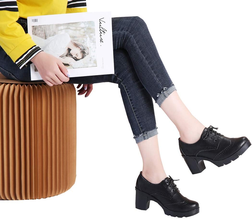 DADAWEN Women’s Leather Classic Lace Up Platform Chunky Mid-Heel Square Toe Oxfords Dress Pump Shoes