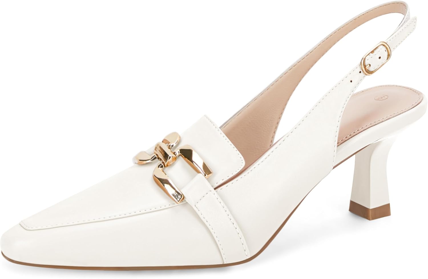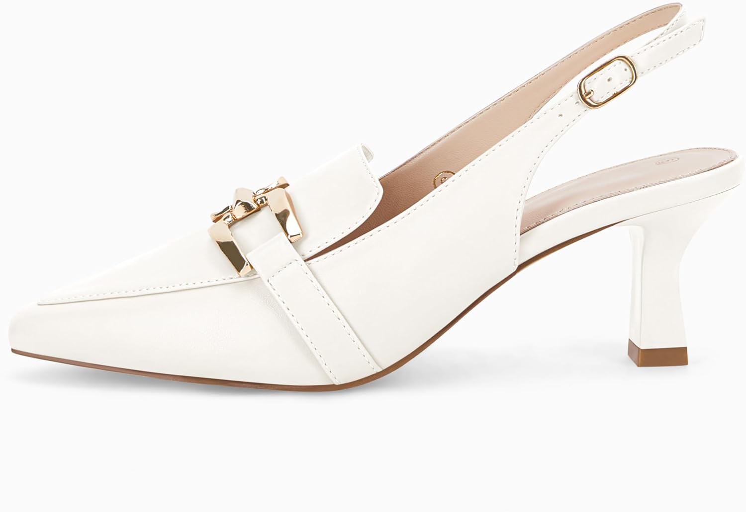 Fashare Womens Kitten Heels Slingback Closed Pointed Toe Dress Shoes Metal Chain Buckle Elegant Pumps
