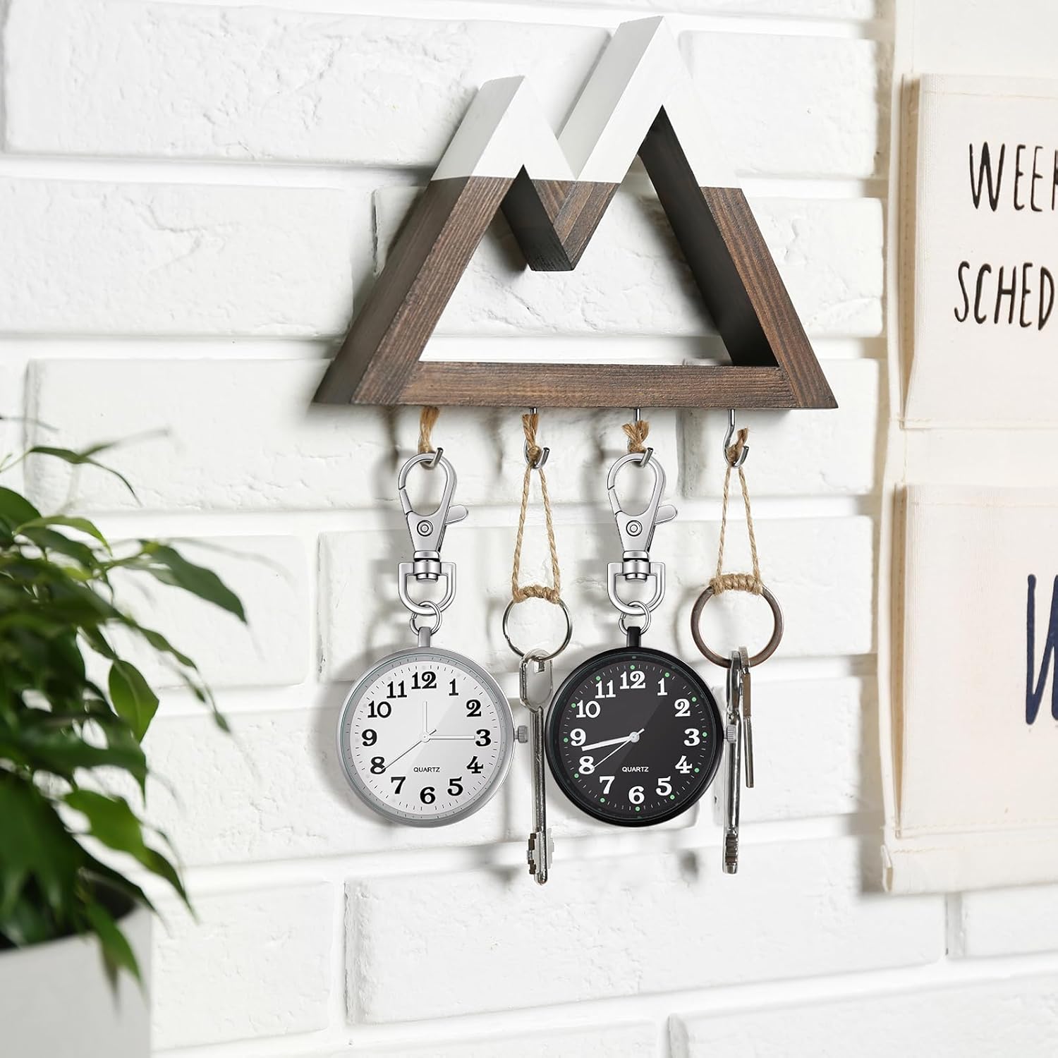 2 Pieces Quartz Pocket Watch with Key Buckle Round Keychain Clip on Watch Portable Unisex