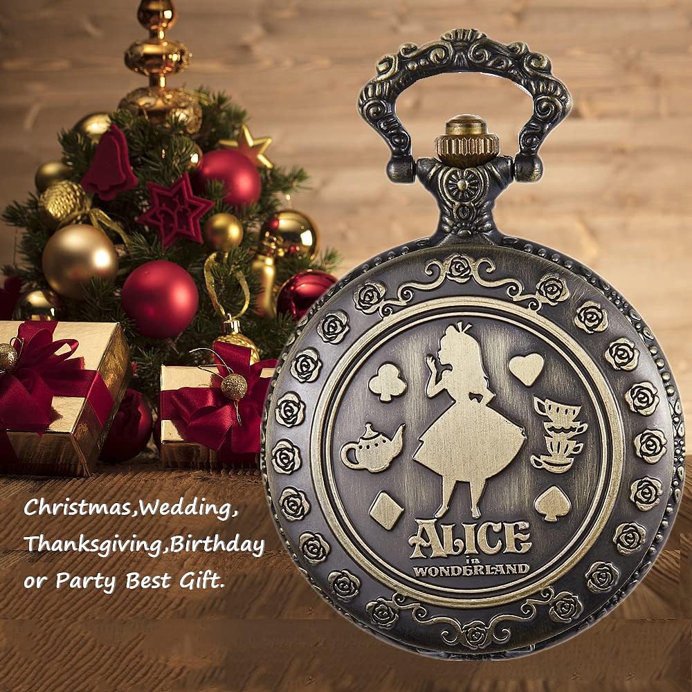 Nostalgia Movie Theme Design Alloy Quartz Pocket Watch with Chain Necklace Pendant & Gift Box