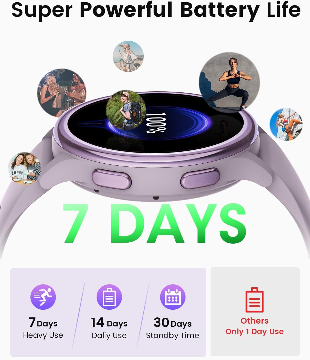 【Extended Battery Life for 7 Days Wear】:The smart watches for women is designed to keep up with your busy lifestyle, with a battery that lasts as long as you do. Compatible with Android 5.0 and iOS 9.0 smartphones and above, it offers up to 30 days of standby time, 14 days of regular use, or 7 days of intensive use. Stay connected without missing a beat.