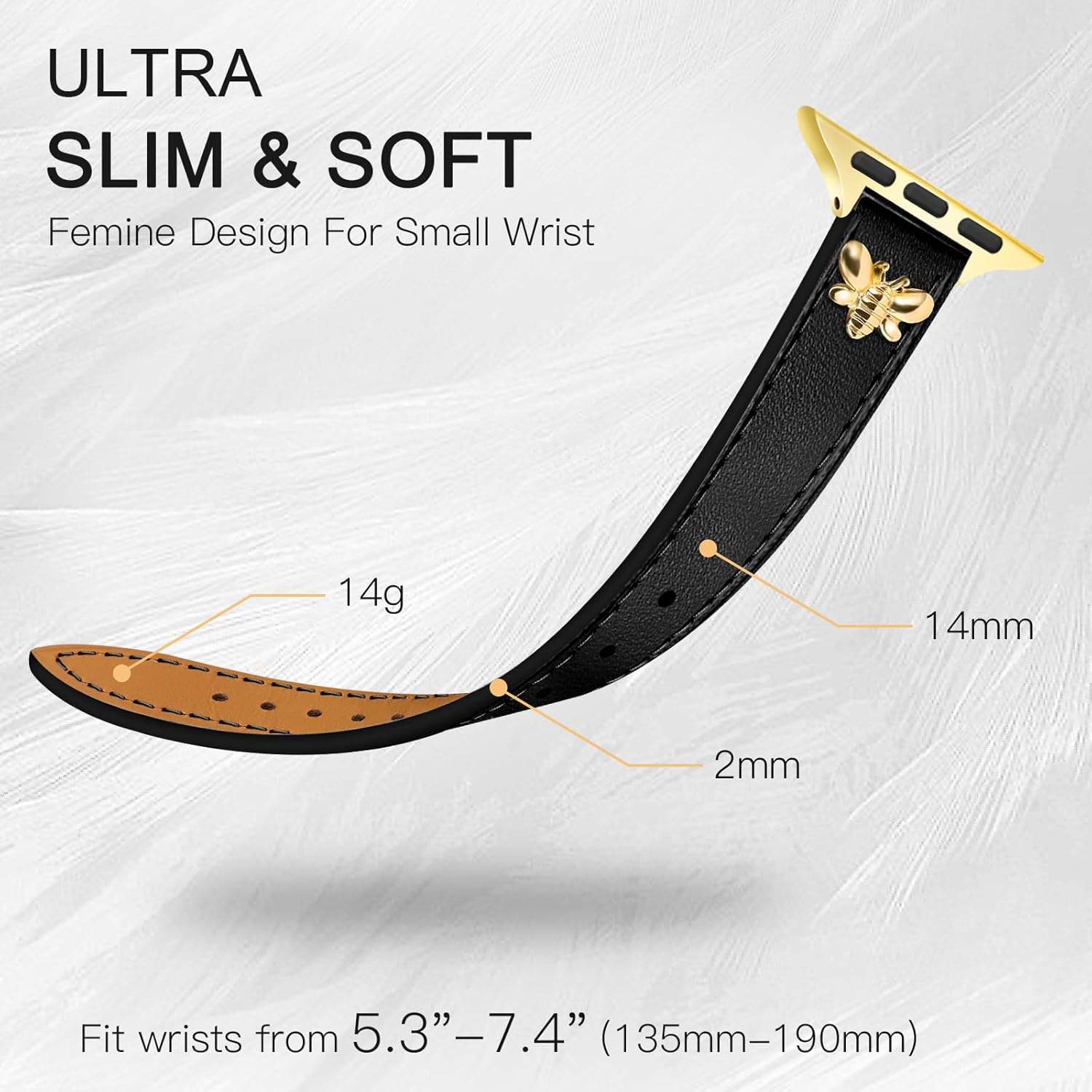 Original Feminine Design:To create a unique feminine style, we made the soft top quality leather into a slender shape, which is more suitable for women’s small wrists. Especially two metal bee charms make it stand out from the crowd