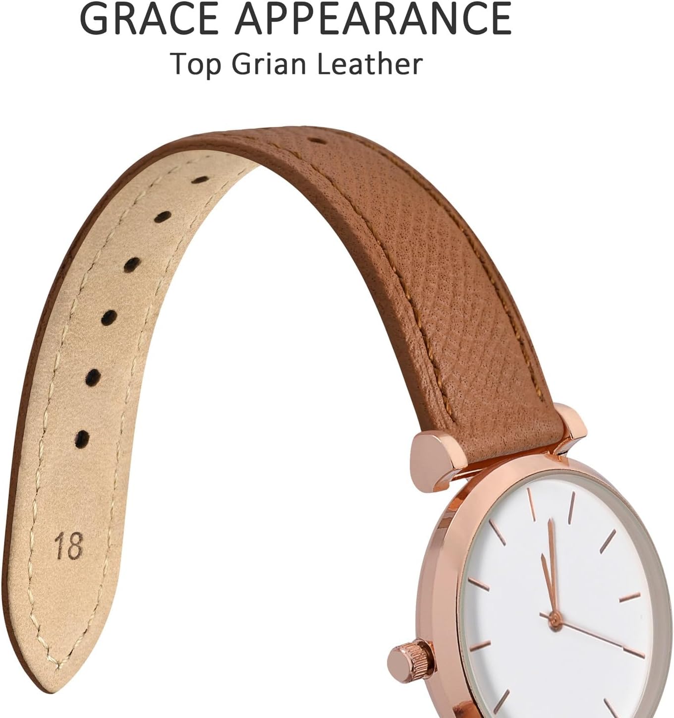 Watch Strap Material: The upper layer is top grain leather with grace texture and the lower layer that touches the wrist is comfortable suede calfskin lining, with a choice of polished silver buckle, gold buckle or rose gold buckle.