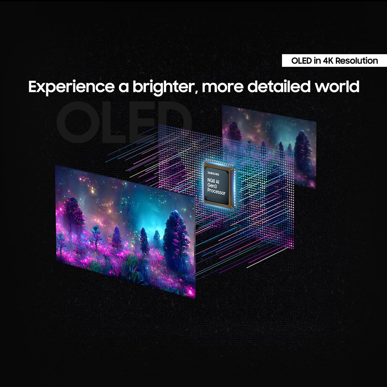EXPERIENCE A BRIGHTER WORLD: Content springs to life in 4K QD-OLED; Brilliant imagery shines with 250 nits (typ) of brightness and a wider spectrum of colors, shades & contrasts; The NQ8 AI Gen3 Processor also upscales lower resolutions to nearly 4K