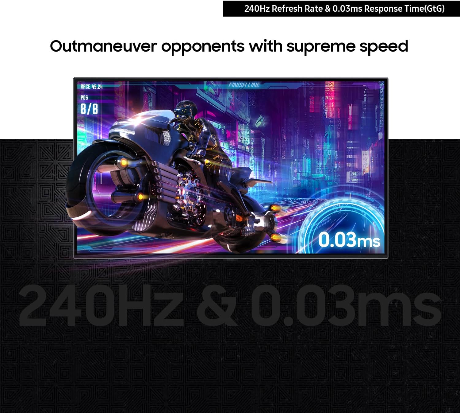 OUTMANEUVER OPPONENTS w/ SUPREME SPEED: Dodge, counter & engage faster with QD-OLED technology, offering a near-instant 0.03ms response time (GtG); Stay ahead with HDMI 2.1 & DisplayPort connections & a 240Hz refresh rate in UHD resolution¹