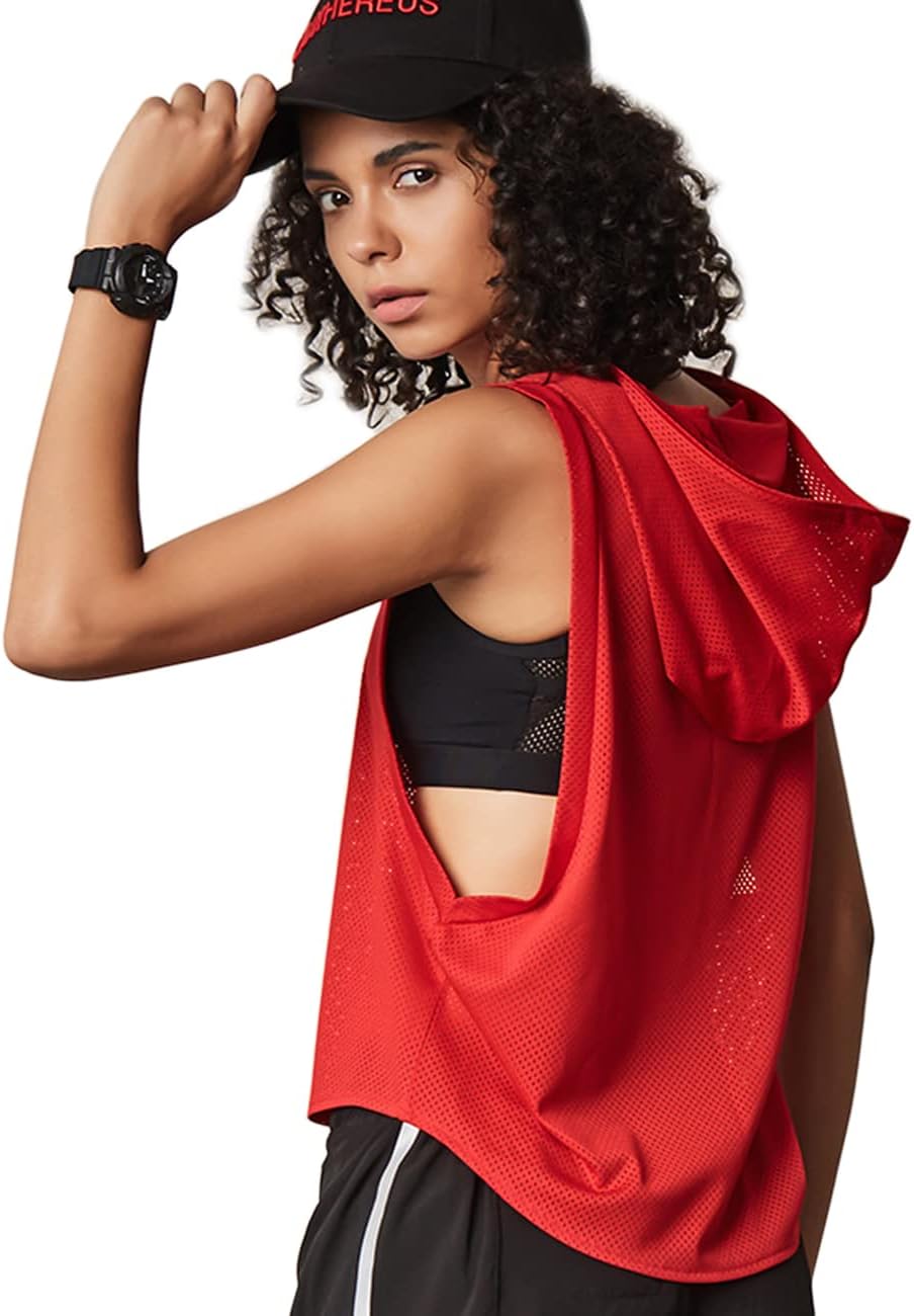 Women’s Fitness Sleeveless Mesh Hoodie Sports Running T-shirts Workout Tops
