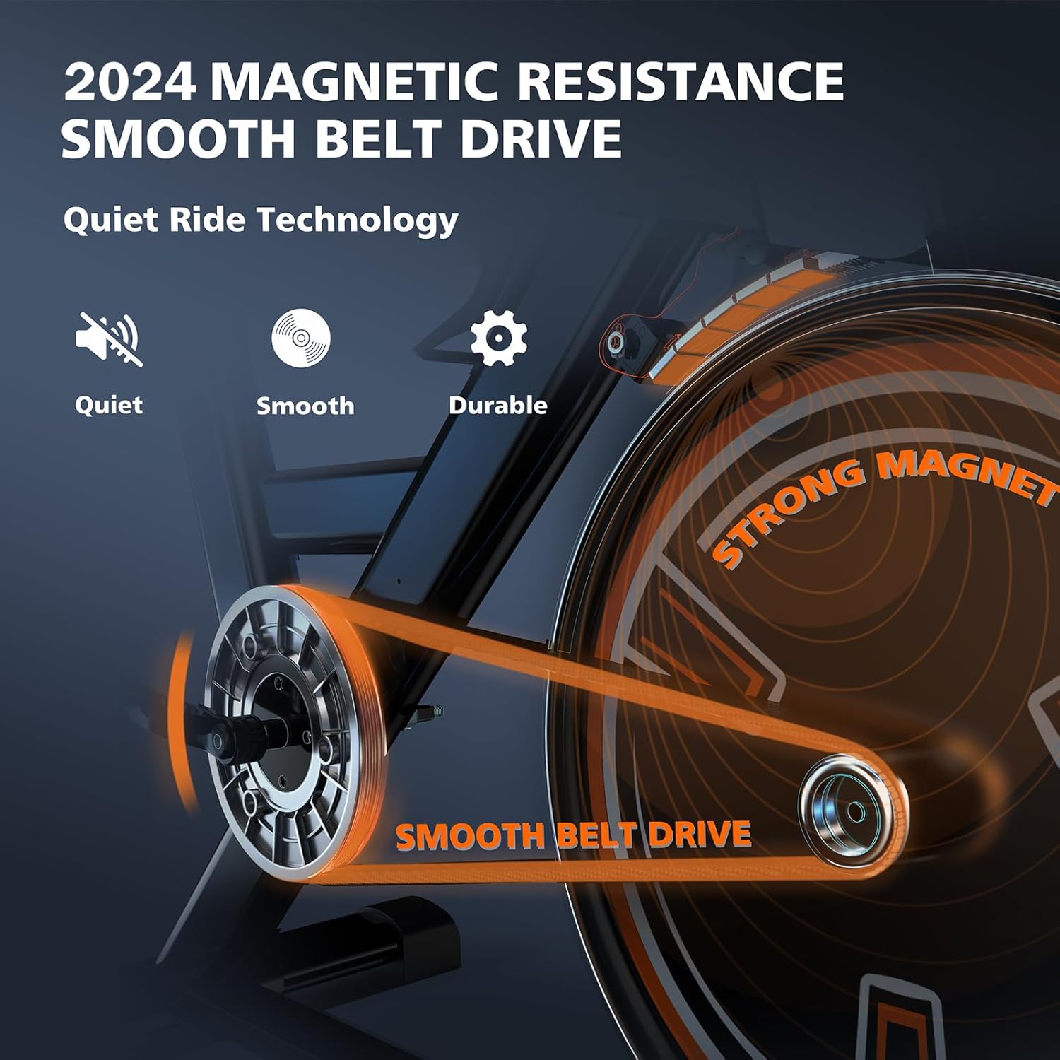 Hyper-quiet magnetic drive system: we developed the latest technology magnetic system and eliminates noise to our fitness bike, controlling the sound at 20DB even after millions of times workout. No disturbing on working, reading, and sleeping at home
