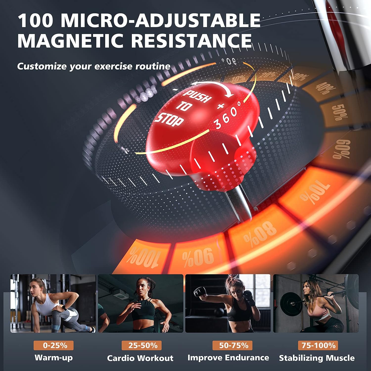40 lbs flywheel with 100 micro-adjustable resistance: 40 lbs flywheel inspires your potential, no matter you’re beginner or fanatic. 100 micro-adjustable magnetic resistance levels, easy to customize exercise routine like burning calories, lose weight