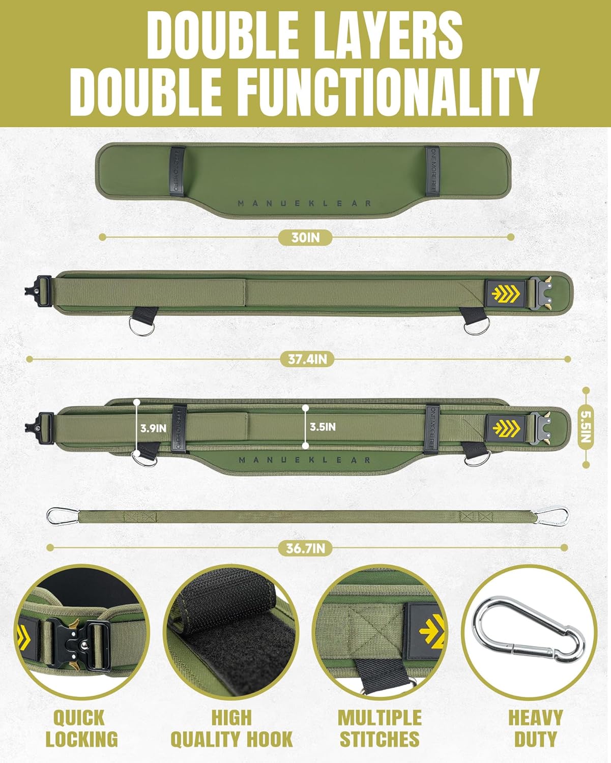 𝐕𝐞𝐫𝐬𝐚𝐭𝐢𝐥𝐞 𝐏𝐞𝐫𝐟𝐨𝐫𝐦𝐚𝐧𝐜𝐞: Unleash your full potential with the MANUEKLEAR Weighted Belt. Whether you’re powerlifting, squatting, or performing weighted pull-ups, this belt is designed to enhance your performance and elevate your training routine. With its versatile functionality and durable construction, it’s the perfect companion for achieving your fitness goals.