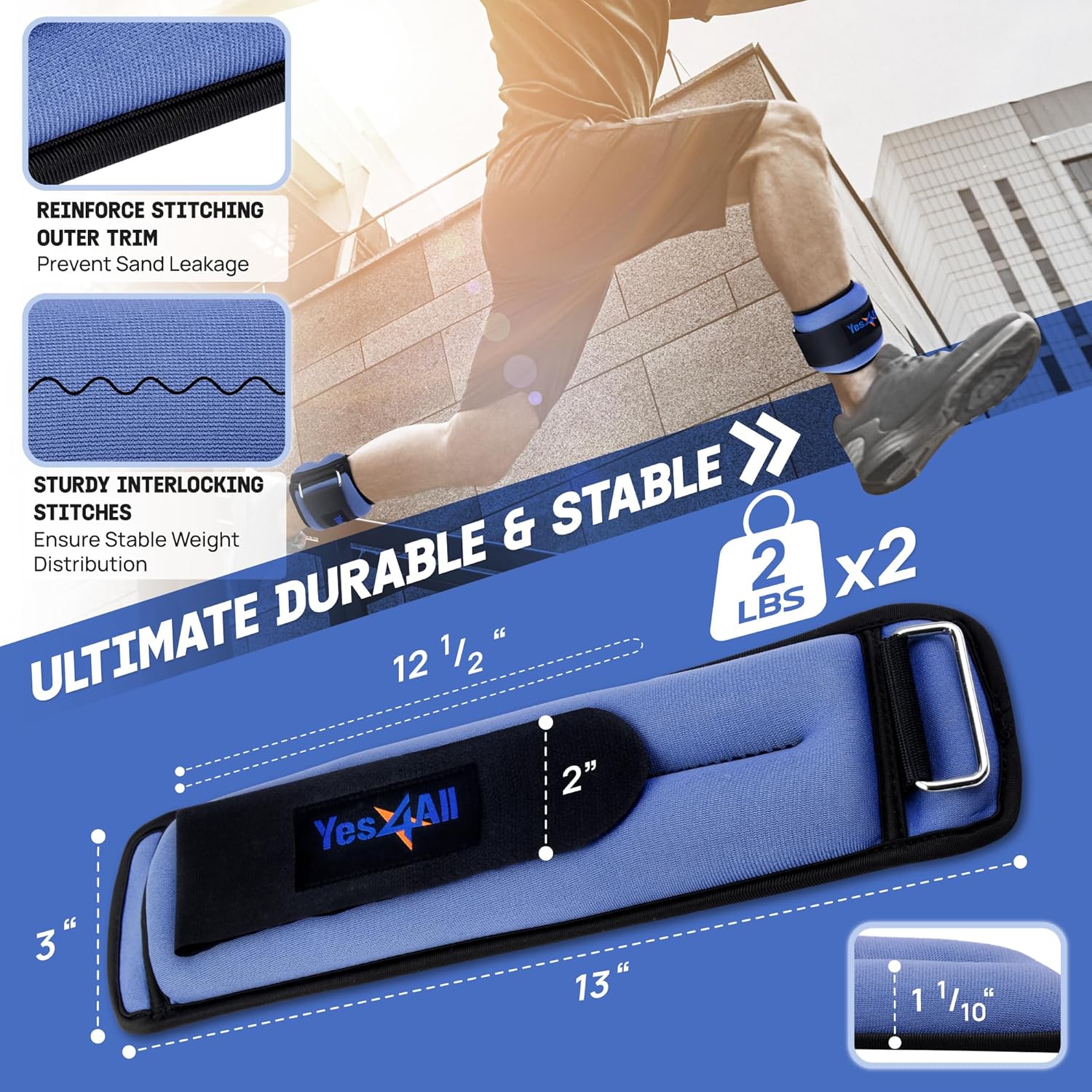 ENHANCE YOUR FITNESS ROUTINE: Take your workouts to the next level with high-quality Yes4All Wrist and Ankle Weights; These adjustable ankle weights range from 1LB to 10 LB, allowing you to customize resistance and challenge muscles