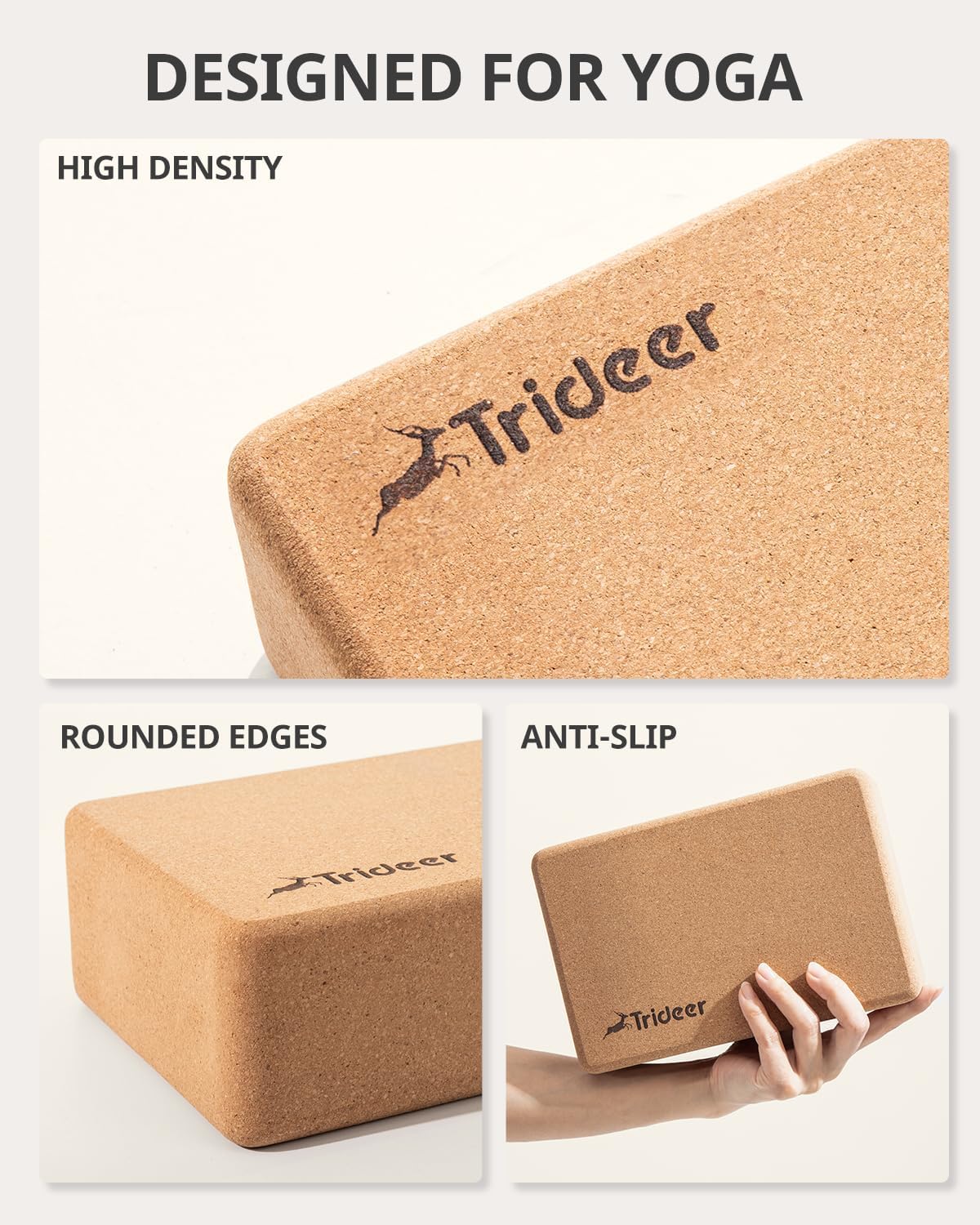 【Natural & Sustainable】Made from sustainably harvested cork oak with no cutting or harming involved, the Trideer cork yoga blocks are renewable, recyclable, up to CA’s Prop 65 standards. Safe for you and your family.