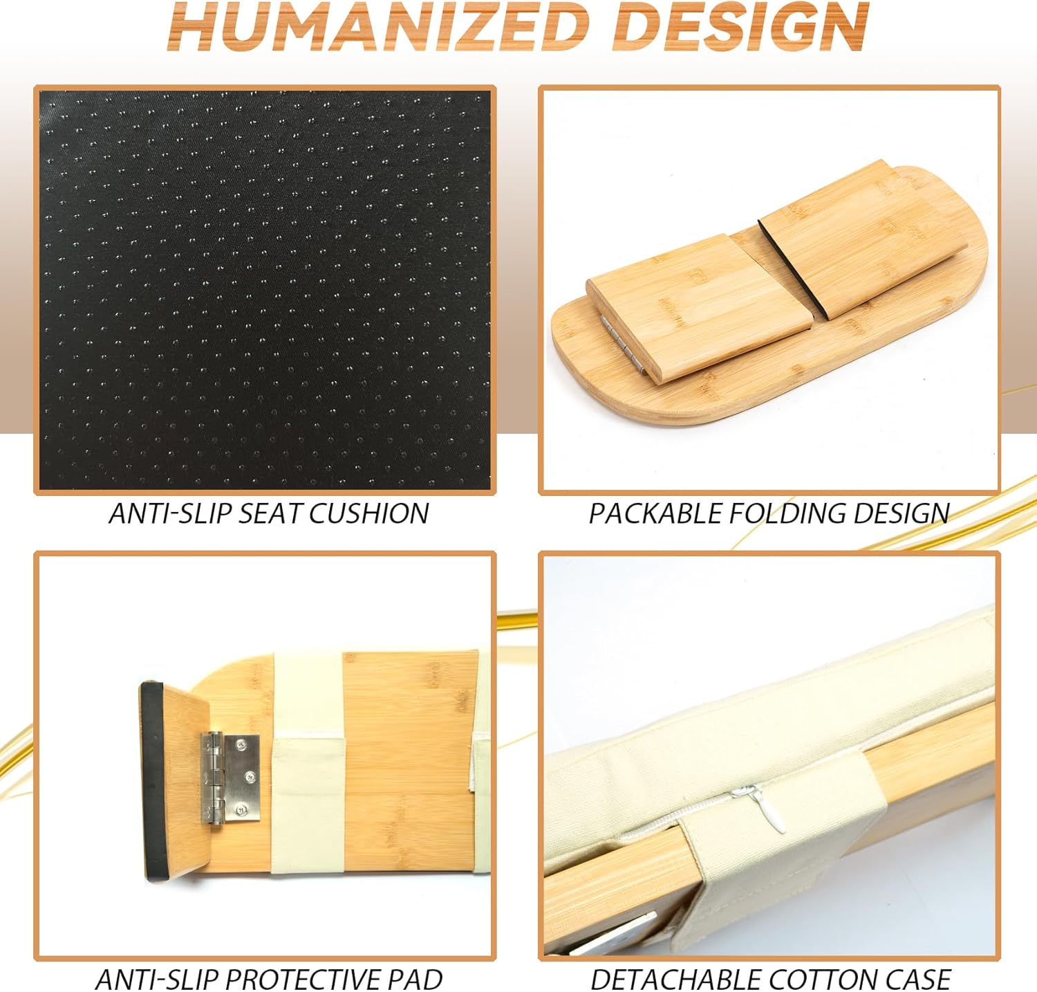 🧘♂️【100% Natural Bamboo】 This folding meditation bench is made of 100% sustainable bamboo with a durable, machine-washable cotton case for extra protection. Folding meditation bench is constructed with durability and strength, which has a maximum load-bearing capacity of 260 lbs. Use with or without cushion based on what fits you best.