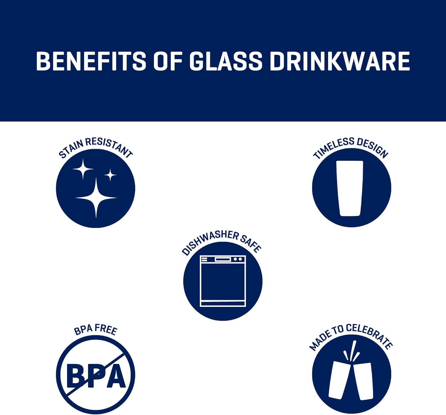 SAFE: Anchor Hocking glass is healthier than plastic and metal. It will not warp, stain, retain smells, or leach chemicals into drinks and beverages.
