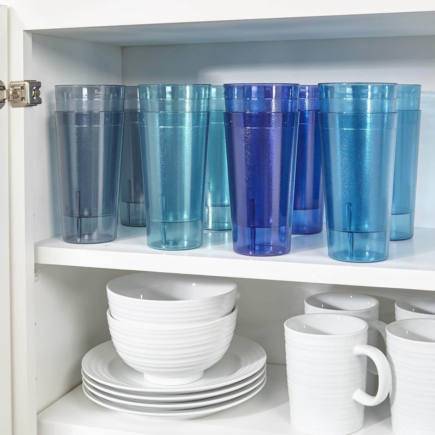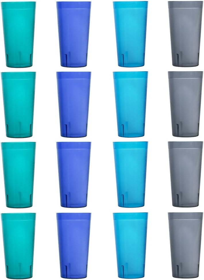 US Acrylic Cafe Plastic Reusable Tumblers (Set of 16) 20-ounce Water Cups Coastal Colors | Restaurant Style Drinking Glasses Value Set, Stackable, BPA-free, Made in the USA | Top-rack Dishwasher Safe