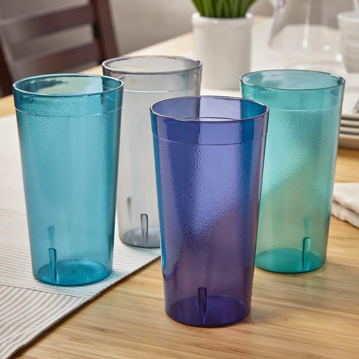 Say goodbye to worries about breakage with our shatter-resistant tumblers, perfect for parties, family gatherings, and outdoor events. This classic style plastic glass set is a great addition to any college dorm room, first apartment, rv, and camper. Consider adding these as a wedding registry gift for a new household.