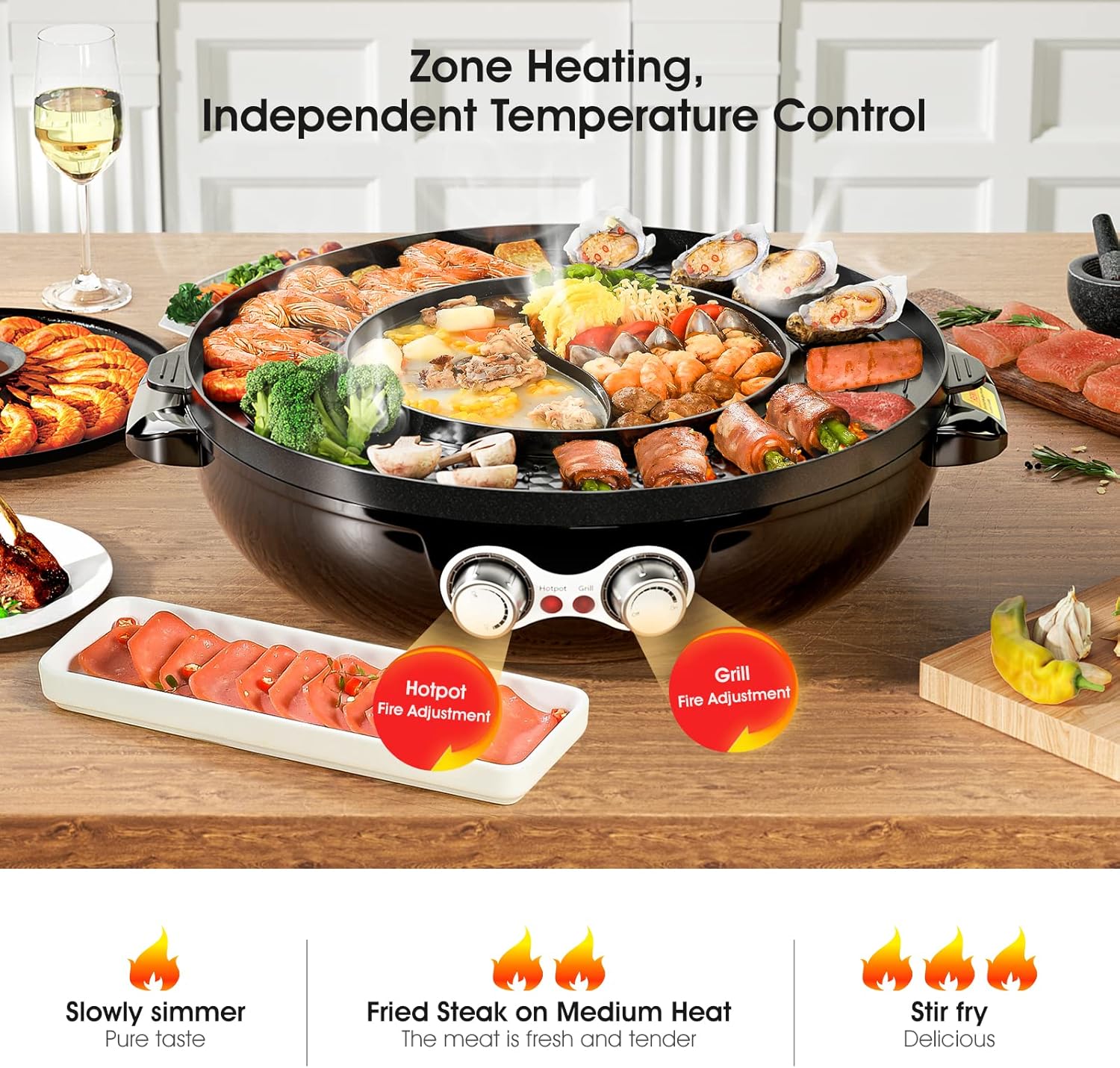 Separate Dual Temperature Controls hot pothot pot