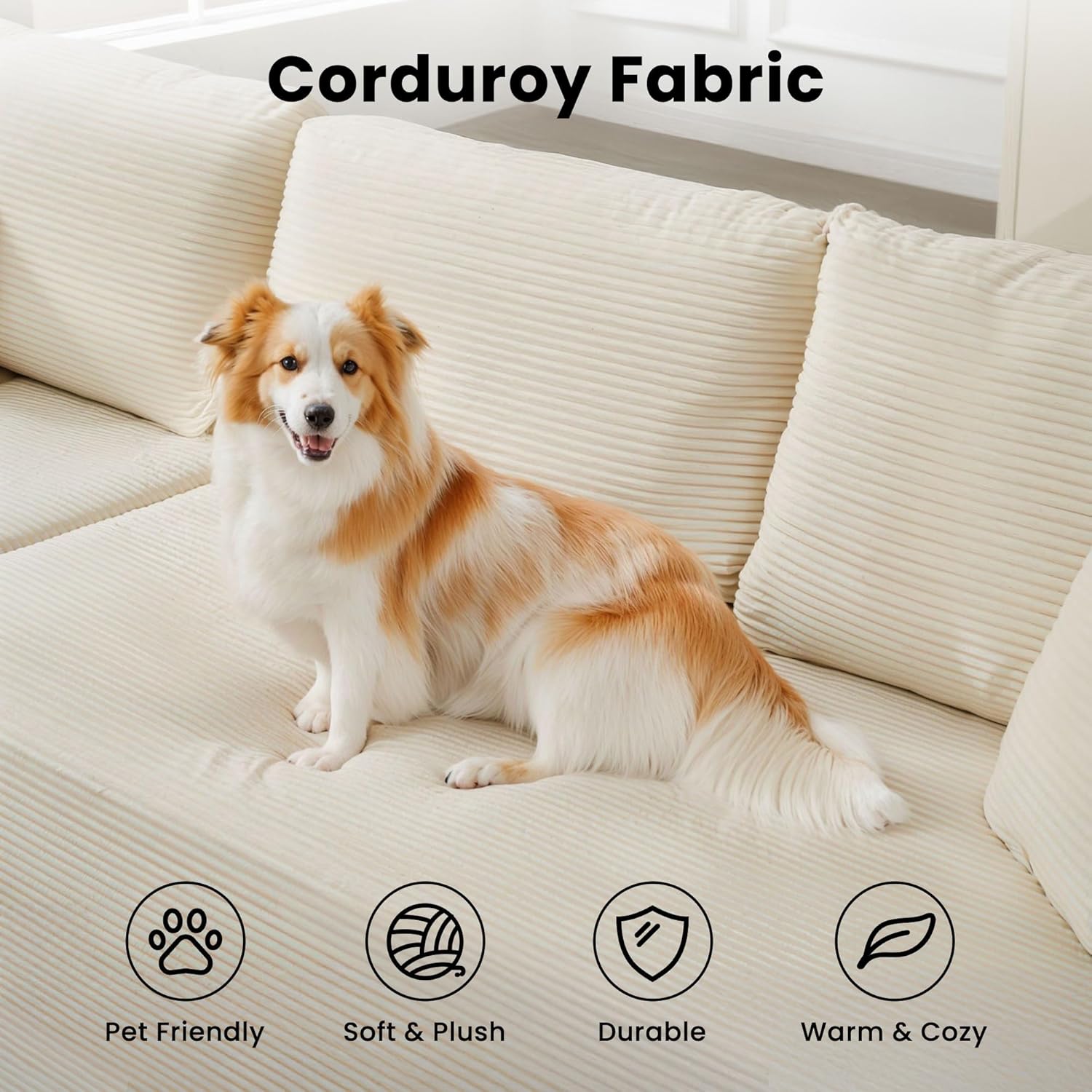 Luxurious Corduroy Fabric: Made with high-quality corduroy, this modular couch offers a soft, luxurious feel while being highly durable for everyday use. Its pet-friendly design resists wear and tear, making it perfect for homes with furry friends