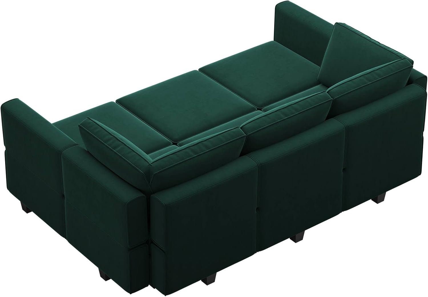 Belffin Modular Velvet Sectional Sofa with Chaise Lounge Sectional Sleeper Sofa with Storage Chaise Bed Couch for Living Room Green