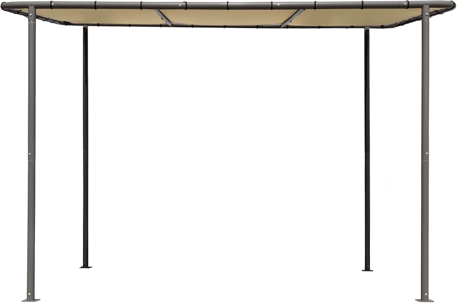 Your canopy will last season after season with its durable steel frame. The 2 inch carbon steel gray tube frame is powder coated to resist chipping, peeling, corrosion, and rust. Features bolt connections, a welded T-frame, and spike anchors for added security and stability. The 1-3/8″ cross beams provide robust anchoring for the outdoor canopy cover. The attractive, neutral tan canopy cover is constructed from 300 denier polyester. Its water-resistant and provides protection from UV rays. Attaching the gazebo cover is easy. Simply use the included bungees that encircle the cross beams to attach the cover for a drum-tight fit. Set-up of the frame is a cinch and requires 2 people for quick assembly. No additional parts are required for assembly.