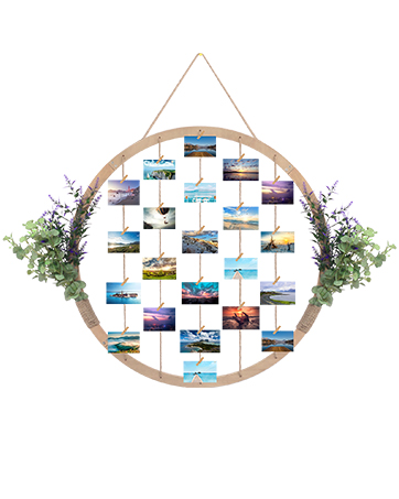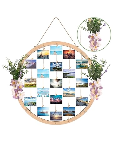 Super Holiday Large Round Wooden Picture Frames – 60CM/23.62″ Artificial Flower/Eucalyptus Hanging Display Board Photo Frames Collage Wall Decor, for Spring Summer Mother’s Day Grandma Christmas