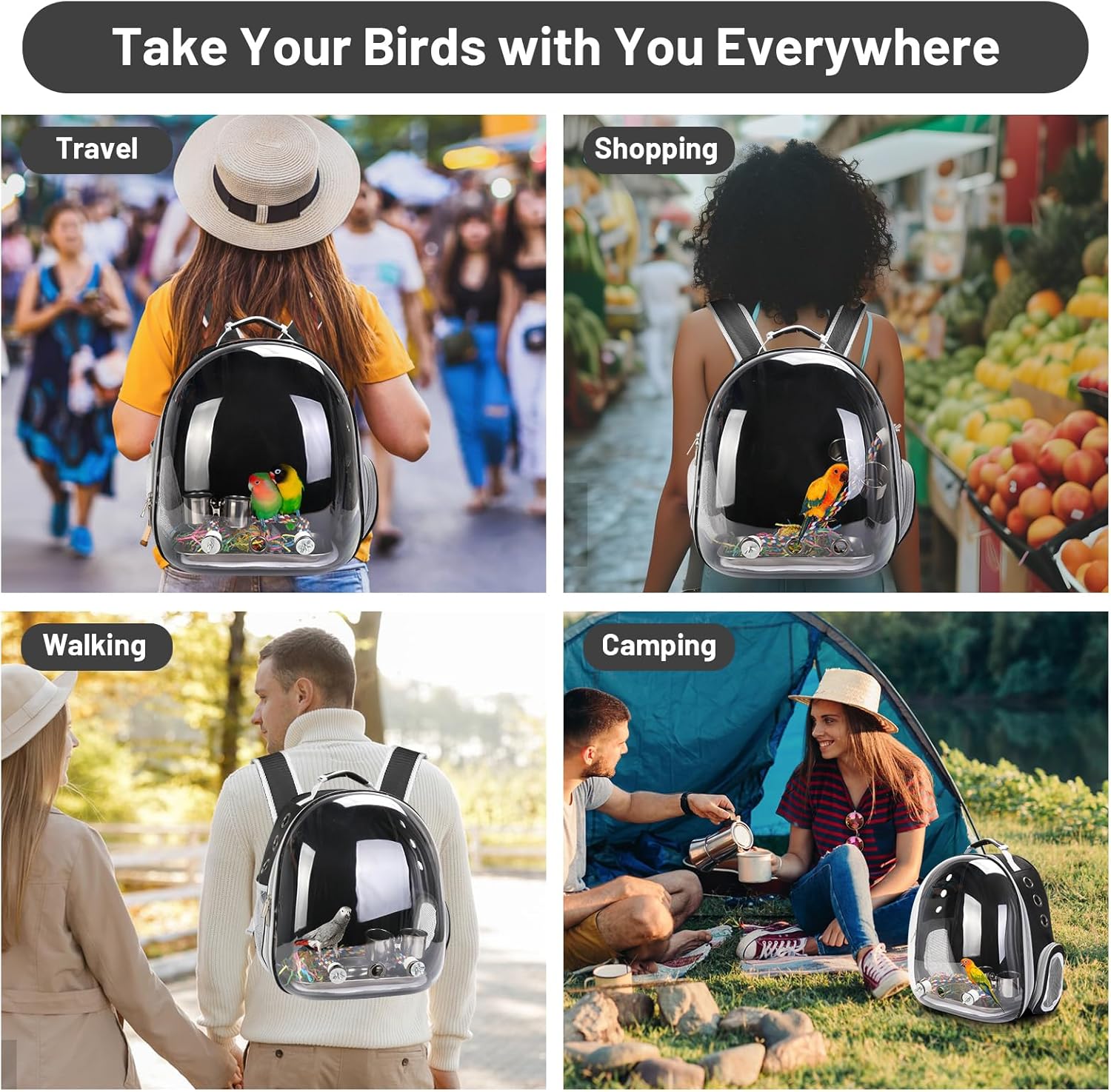 Breathable & Perspective: Great air circulation with ventilation holes on sides and front, birds can enjoy fresh air; Front transparent window offers scenic views during outdoor adventures.