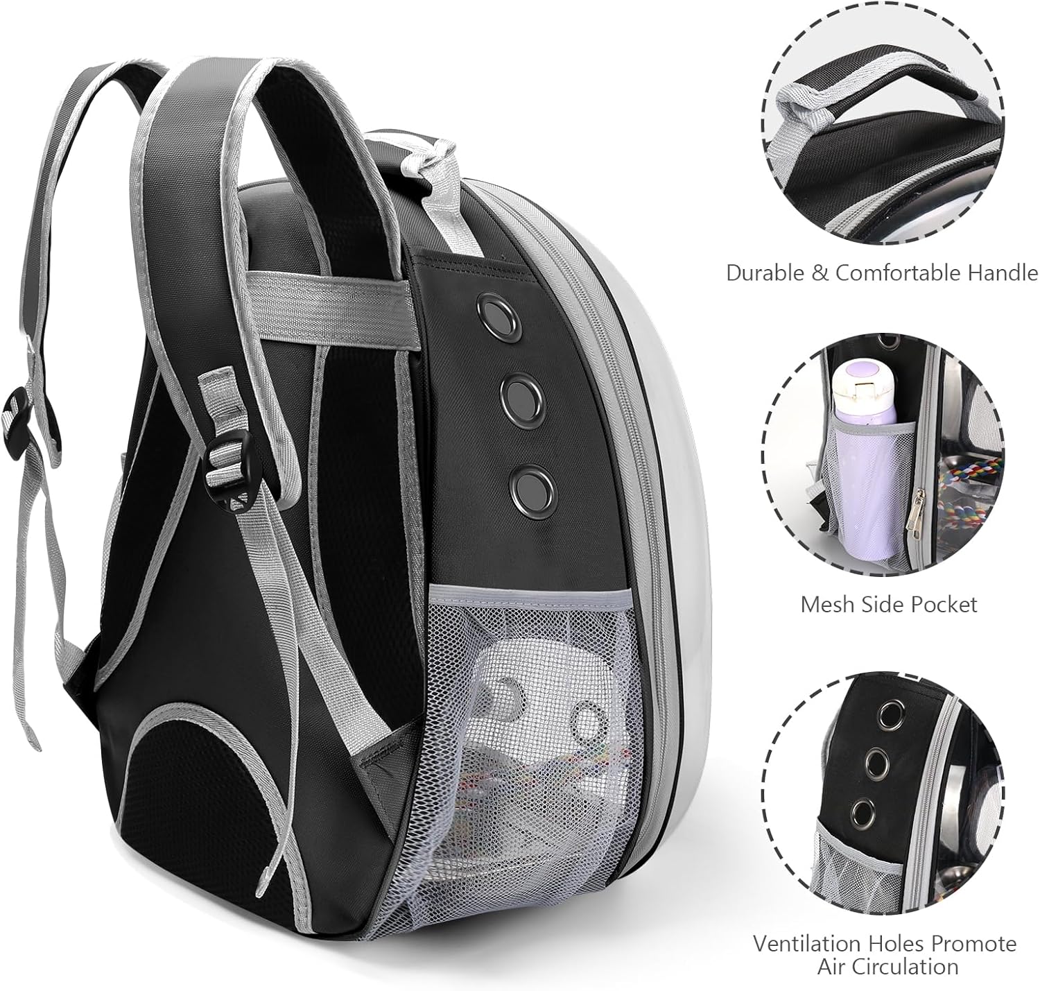 Bird Travel Backpack Carrier, Bird Cage for Small Medium Size Parakeet Budgies Cockatiel, Space Capsule Clear Bubble Window with Stainless Steel Tray Food Bolw Standing Perch (Black)